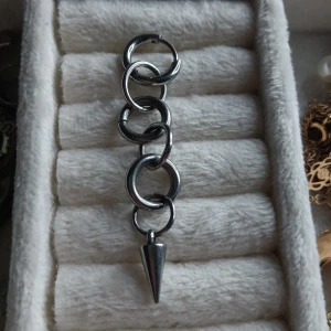 Snyggt och edgy örhänge i silverfärg med en kedja av ringar och en konformad detalj längst ner. Perfekt för att ge din stil en unik touch.