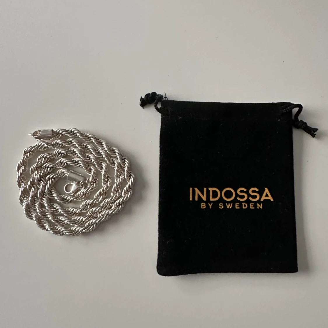 Ett helt nytt halsband från indossa. Använt 3-4 gånger, har legat i påsen sedan några månader tillbaka. Säljer pga att jag inte använder sånt längre. Nypris 500, halsbandet är 6mm