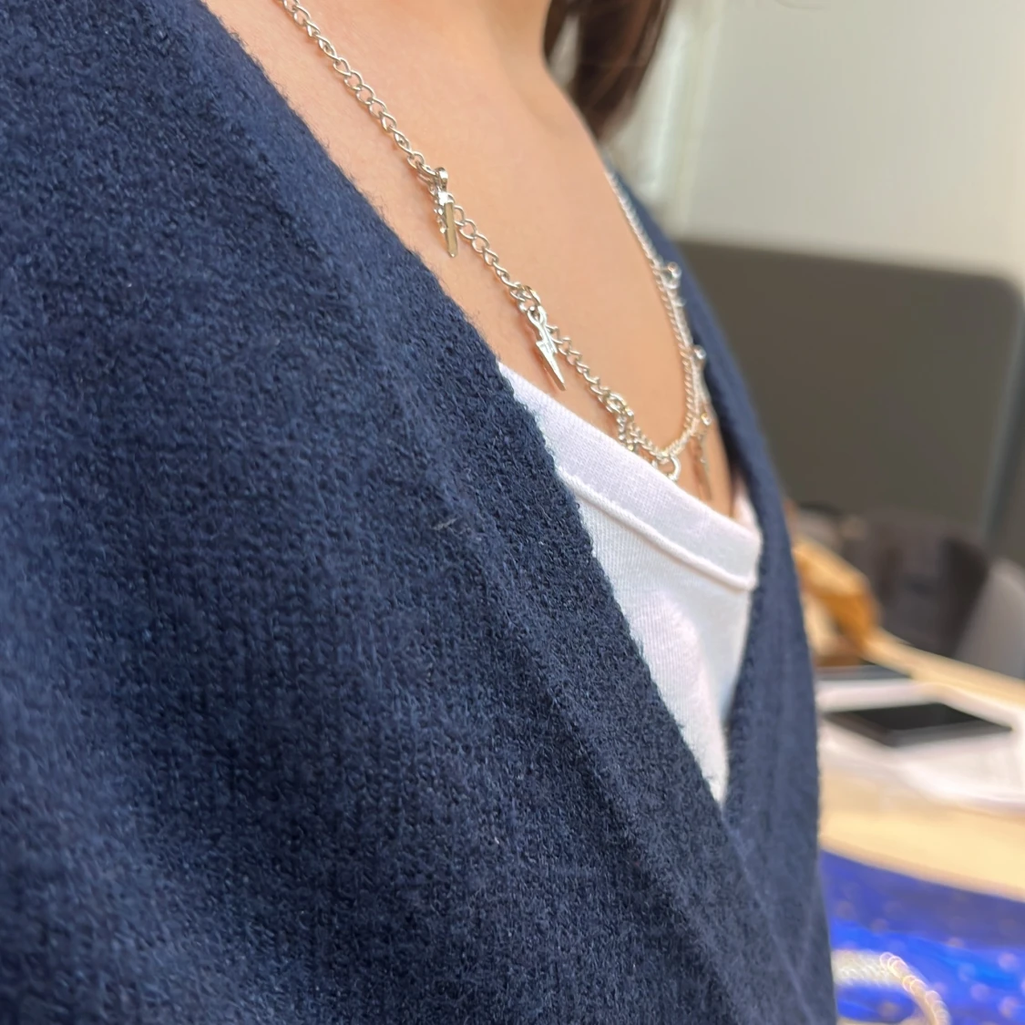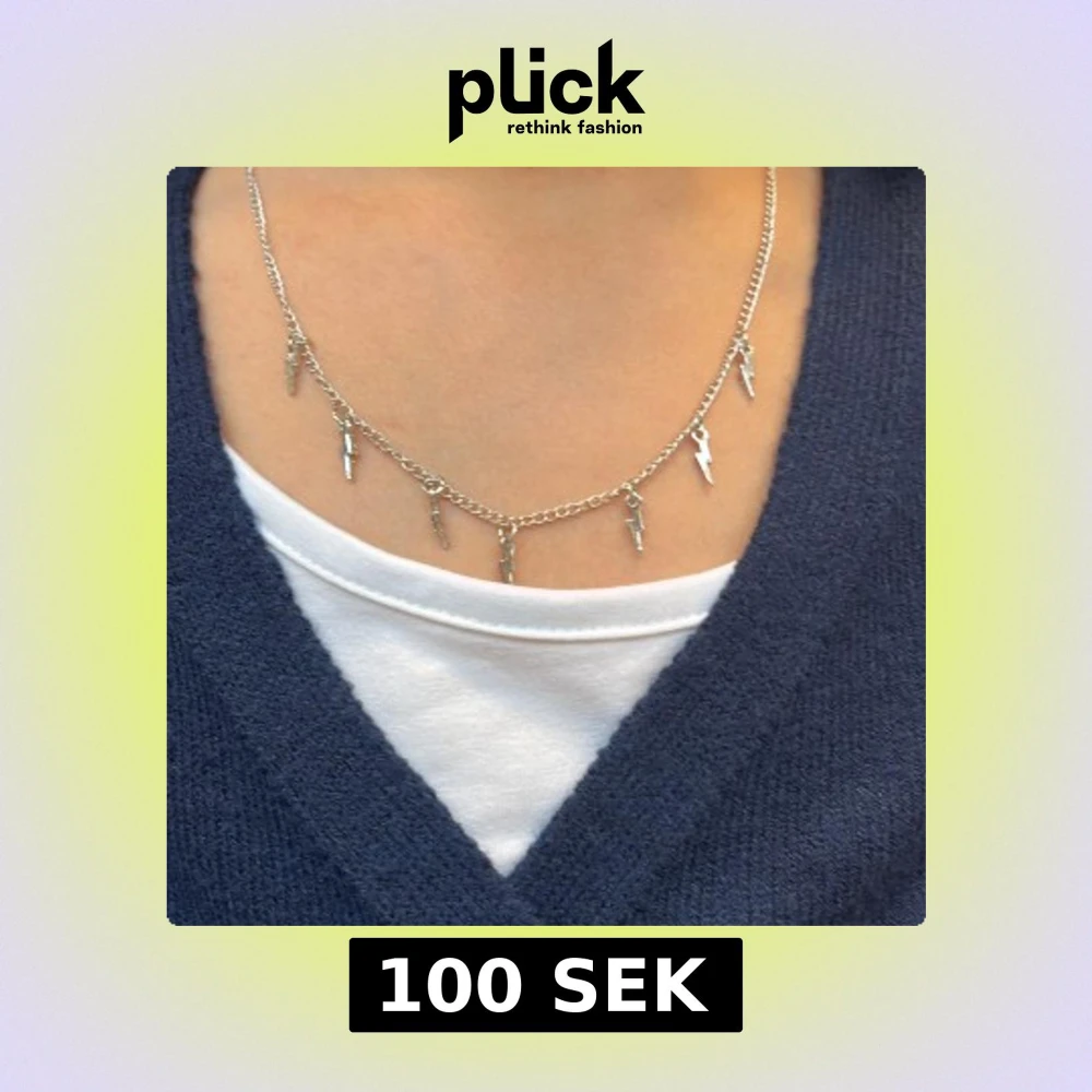 Snyggt halsband i silverfärgad metall med små blixtformade berlocker längs kedjan. Kedjan är tunn och smidig, och blixtarna ger ett coolt och edgy intryck. Perfekt för dig som vill sticka ut med en unik detalj.