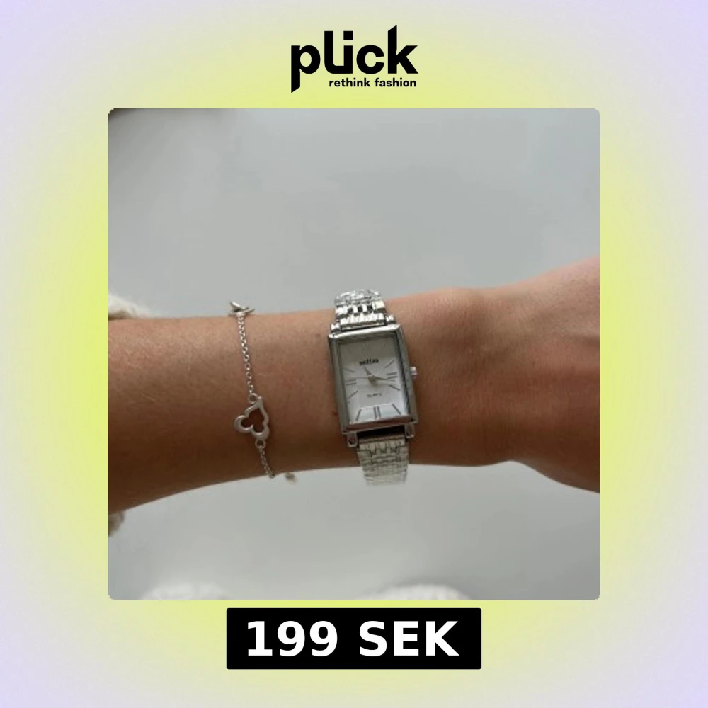 Silver klocka i rostfritt stål så den rostar inte eller tappar färg , oanvänd och helt ny med plasten kvar, går att göra mindre.