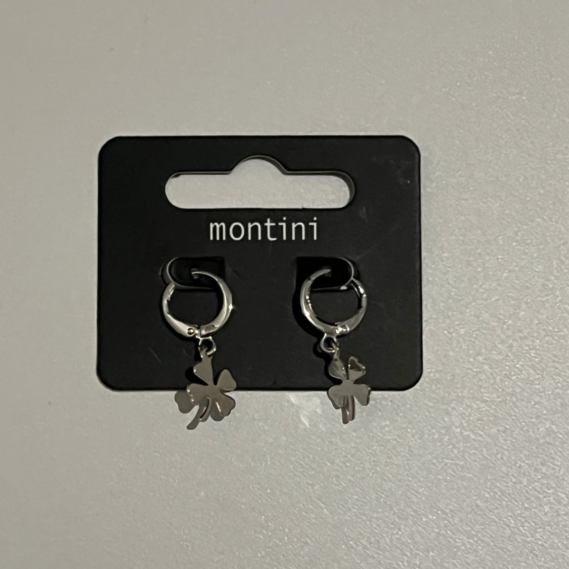 Snygga örhängen i silverfärg från Montini med hängande klöverformade berlocker. Nypris: 49kr. Helt oanvända.