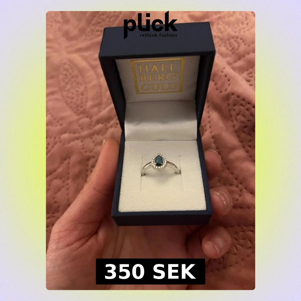 Snygg silverring från Hallbergs Guld med en oval mörkblå sten i mitten, omgiven av små klara stenar som ger extra glans. Ringen har en tunn, elegant skena och kommer i original ask. Perfekt för dig som gillar klassisk och stilren design.