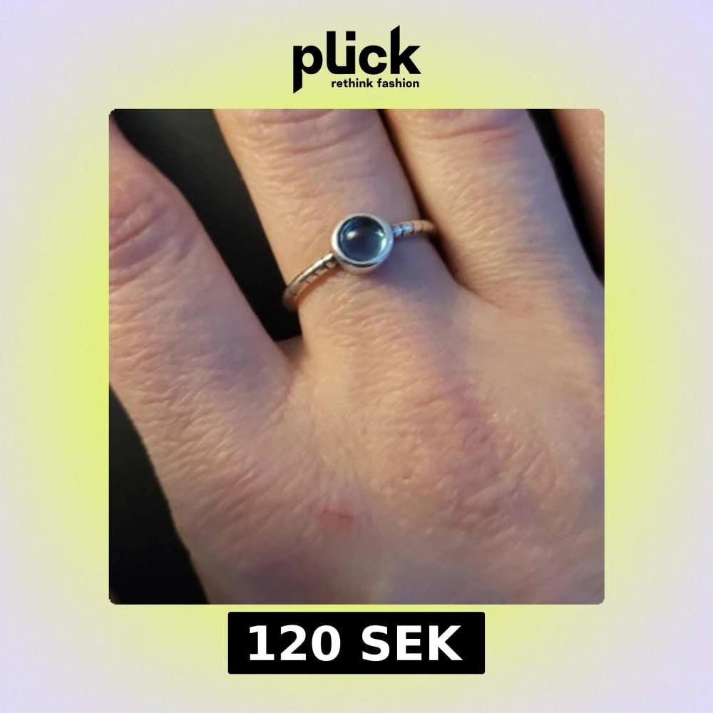 Elegant silverring med en vacker blå sten i centrum. Ringen har en stilren design med en slät yta och en rund infattning för stenen. Perfekt för att ge en subtil färgklick till din outfit.