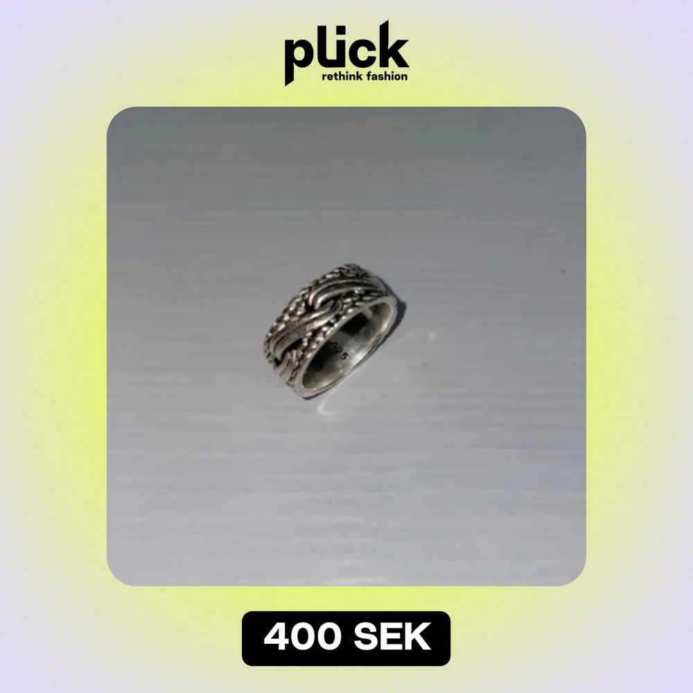 En silverring med ett detaljerat flätat mönster. Köptes i Tyskland för 3 år sedan för runt 85 euro (850kr). Gjord på 925 silver, vilket innebär att 92.5% procent är ren silver. Används inte längre men är riktigt snygg o passar nästan allt. Skriv för mer information 😁