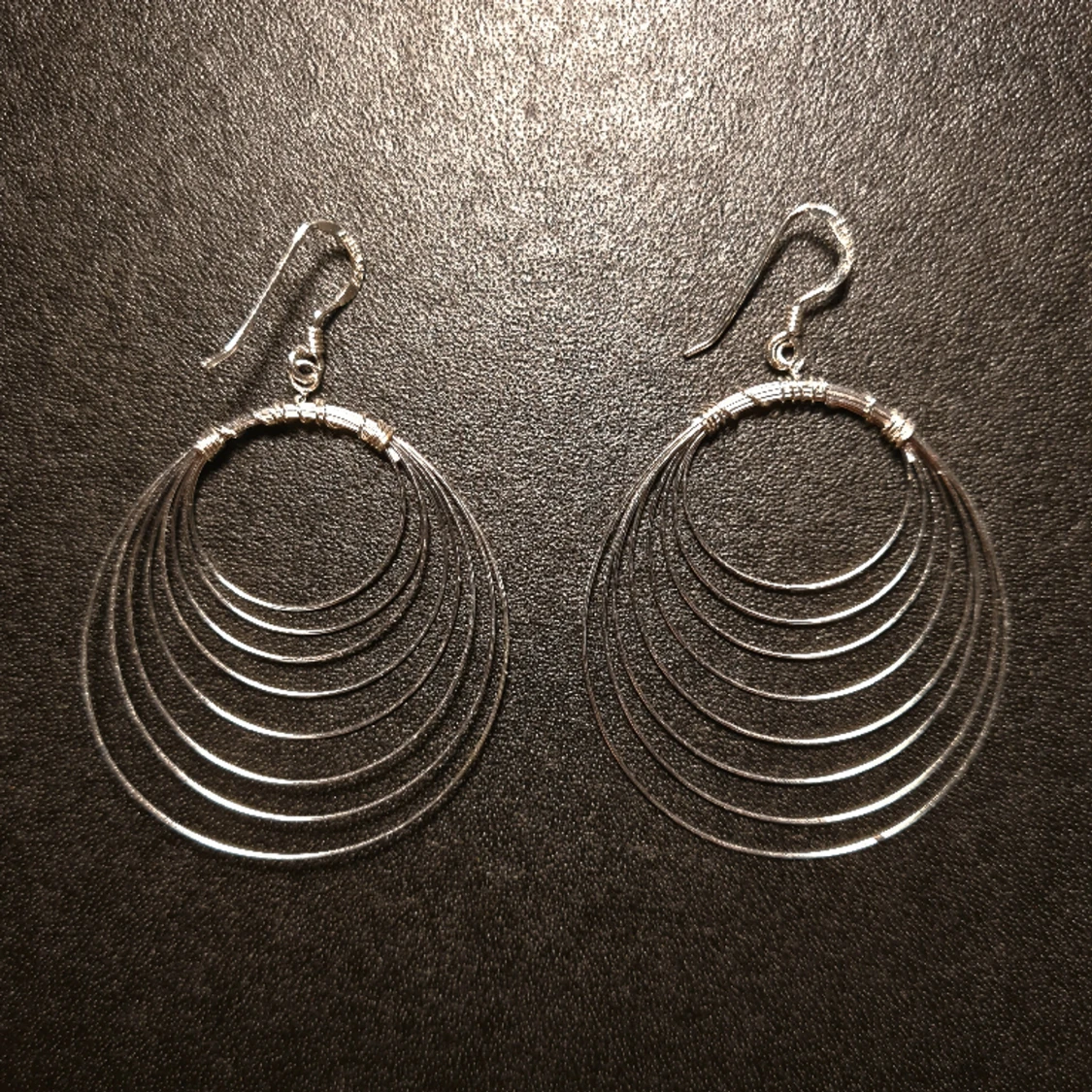 Ett par örhängen som jag tror är gjorda i någon slags silver, kan dock inte garantera något.
