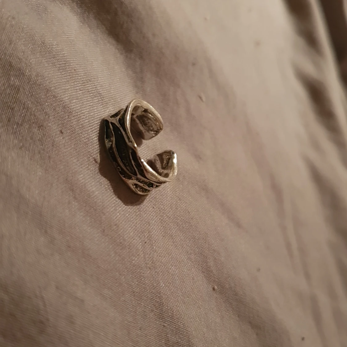 Cool silvrig ring med chunky känsla och ett organiskt, nästan grenliknande mönster. Ringen är öppen baktill vilket gör den justerbar och passar flera storlekar. Perfekt för dig som gillar unika accessoarer med lite edge.