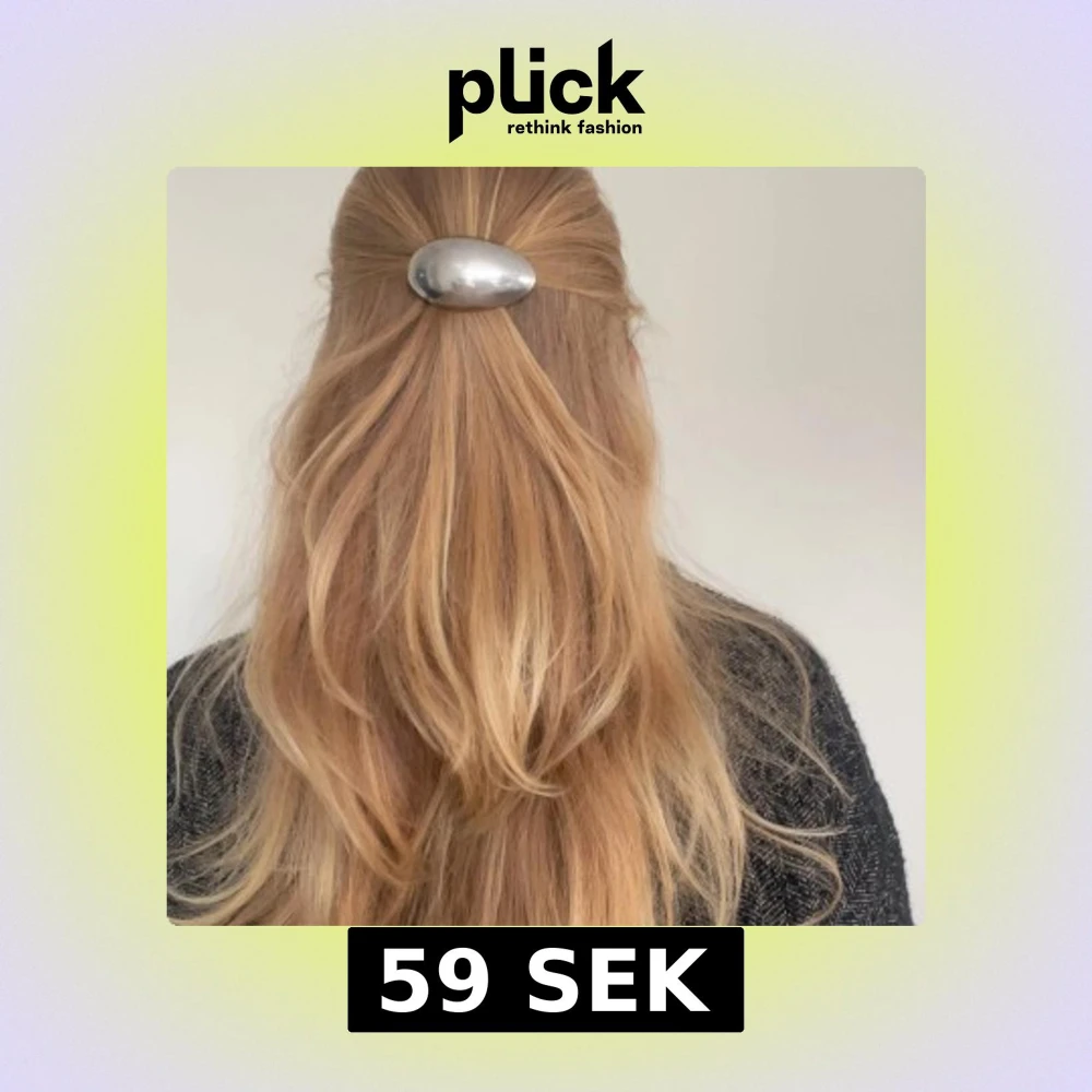 Stilren hårklämma i blankt silverfärgat metallmaterial med oval, mjukt rundad form. Perfekt för att hålla håret på plats och ge en clean look. Klämman har en enkel och modern design som passar till många olika stilar.