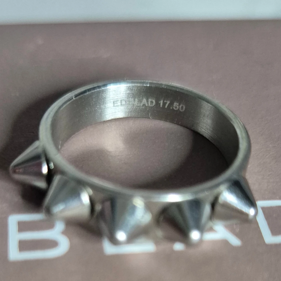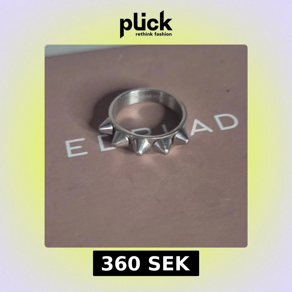 Cool ring i silverfärgat metall från Edblad, storlek 17.50. Ringen har flera spetsiga spikes runt hela bandet som ger en edgy och unik vibe. Perfekt för dig som gillar att sticka ut och vill ha något annorlunda i din smyckessamling.