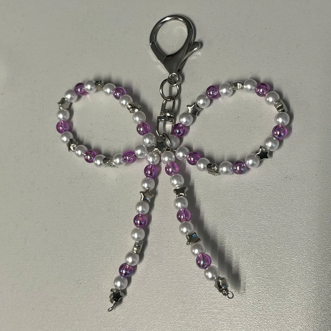 Accessorize your accessories med Charmed Keychains. Pynta din väska, nyckelring mm med våra rosett formade nyckelringar. Lila, vit och silvrig.