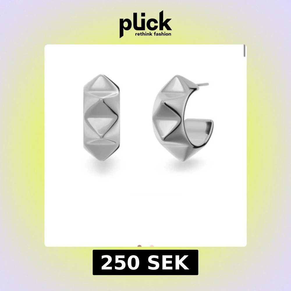Säljer ett par chunky örhängen i blankt silver från Edblad. De har en cool geometrisk design med upphöjda pyramidformer som ger en edgy vibe. Perfekt storlek för att synas utan att bli för mycket. Snygga till både jeans och klänning.