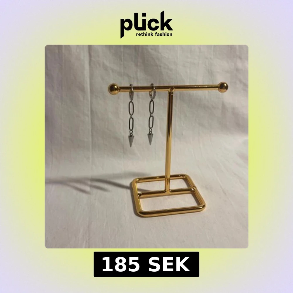Säljer ett par coola örhängen i silverfärg med kedjelänkar och spetsiga triangeldetaljer längst ner. De har en modern vibe och passar perfekt för dig som gillar edgy accessoarer. Hängande modell som ger en snygg statement-look.