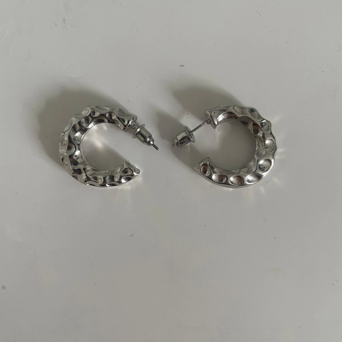 Fina hoop- örhängen!🪩 Örhängena är inte i äkta silver och har endast prövats. De kan kännas som ganska tunga så är dina öron känsliga för tunga örhängen så rekommenderar jag inte de här!🩷 Annars är de väldigt fina och har en diameter på ca 2 cm