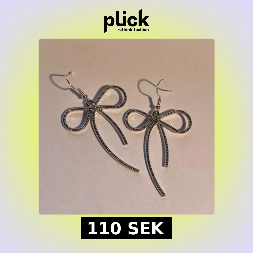 Säljer ett par silvriga örhängen formade som stora rosetter. De har en tunn, elegant design och hängs i örat med krok. Perfekta för dig som vill ha örhängen med söt och trendig känsla. Funkar till alla tillfällen!