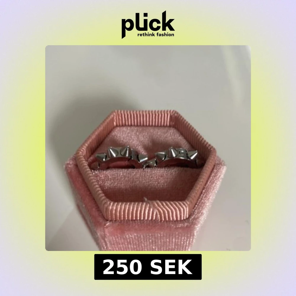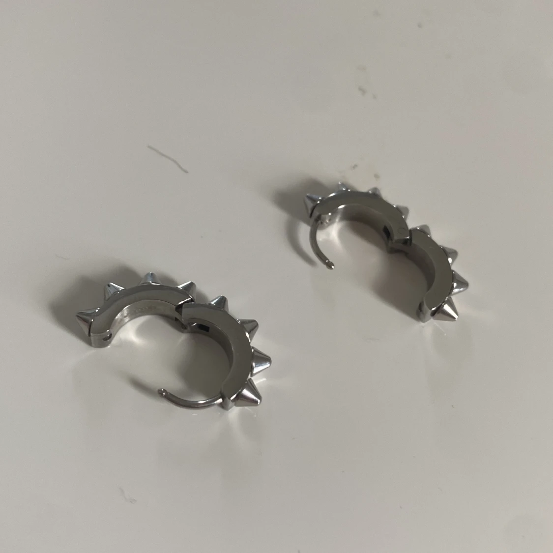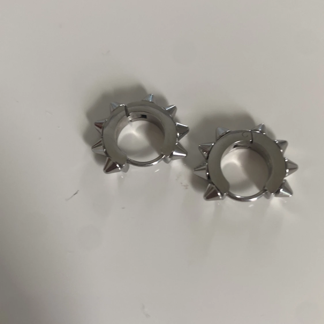 Coola silvriga hoops med spetsiga nitar runt hela ringen. De är chunky och ger en edgy vibe, perfekta för dig som vill sticka ut. Passar både till streetwear och mer alternativa stilar. Materialet är metall med blank finish.