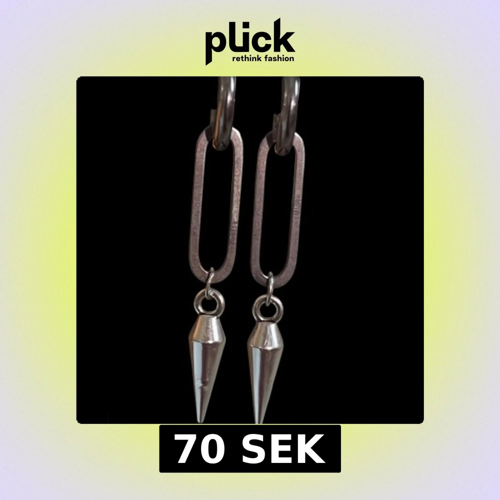 Coola örhängen i silverfärg med avlånga kedjelänkar och spetsiga konformade hängen. Ger en edgy vibe och passar perfekt för dig som gillar statement-smycken. Snyggt till både streetwear och mer dressade looks.