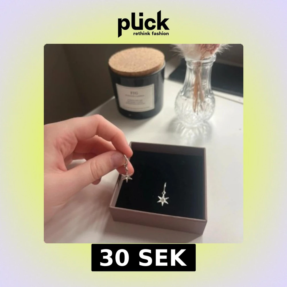 Säljer ett par snygga silvriga örhängen med hängande stjärnor. Perfekt för dig som vill ha en cool detalj till din look. Örhängena är små och stilrena, med en glittrig känsla tack vare stjärnformen. Tvättas med våtservetter och handsprit innan frakt. 🩷