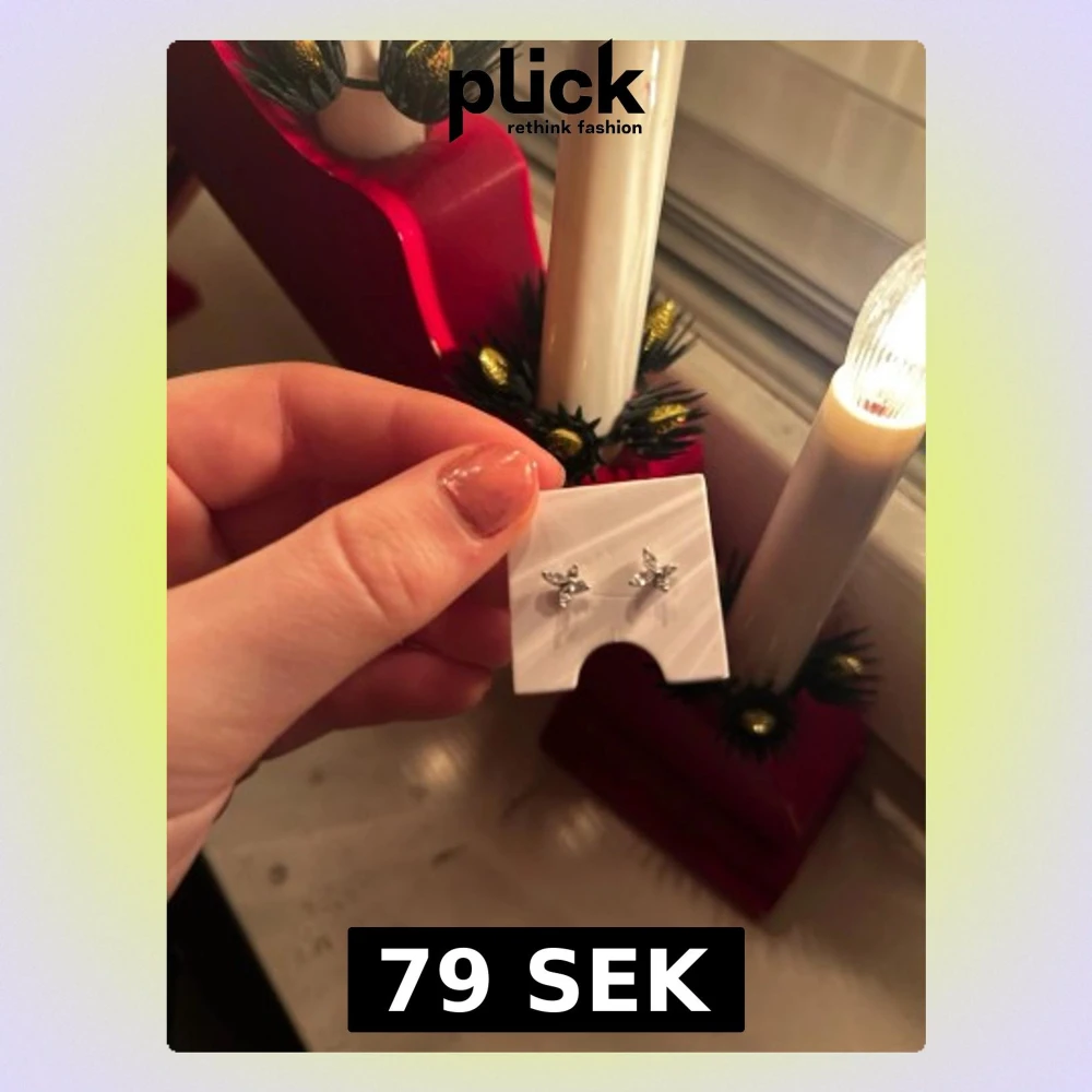 säljer ett par silvriga örhängen med fjärilar och en matchande ring🦋💍💎💎💎💎💎🩶🩶🩶