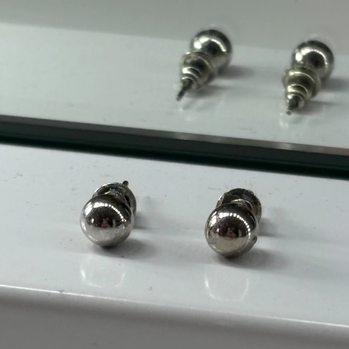 Ett par stilrena örhängen i silverfärg med klotformad design. Använda få gånger. Rengjorda innan de postas! ❣️