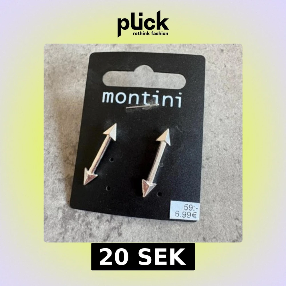 Säljer ett par silvriga örhängen från Montini i form av pilar. Snygg och stilren design som passar perfekt för att ge din look en extra edge. Oanvända