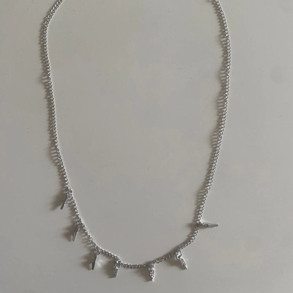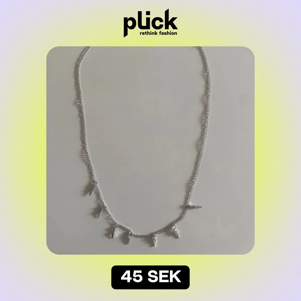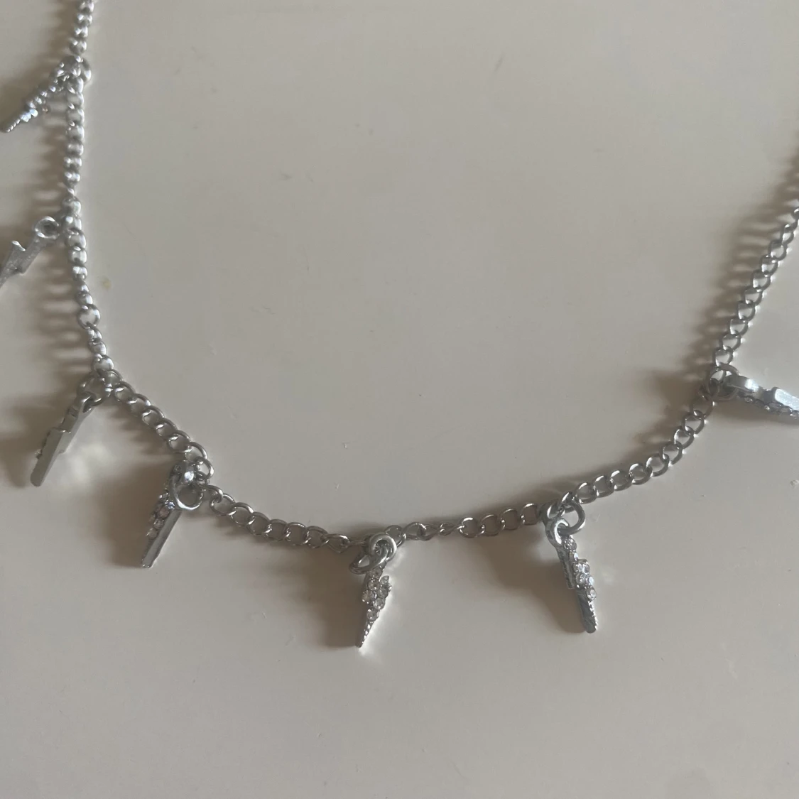 Säljer mitt oanvända halsband. Halsbandet är silvrigt med glittriga blixtar. Det ursprungliga priset är 98 kr från Ur&Penn