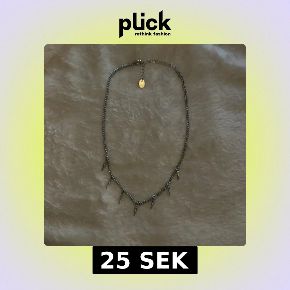 Ett silvrigt halsband med blixtberlocker. Aldrig använt och inget rost. Skriv om ni vill ha tydligare bilder