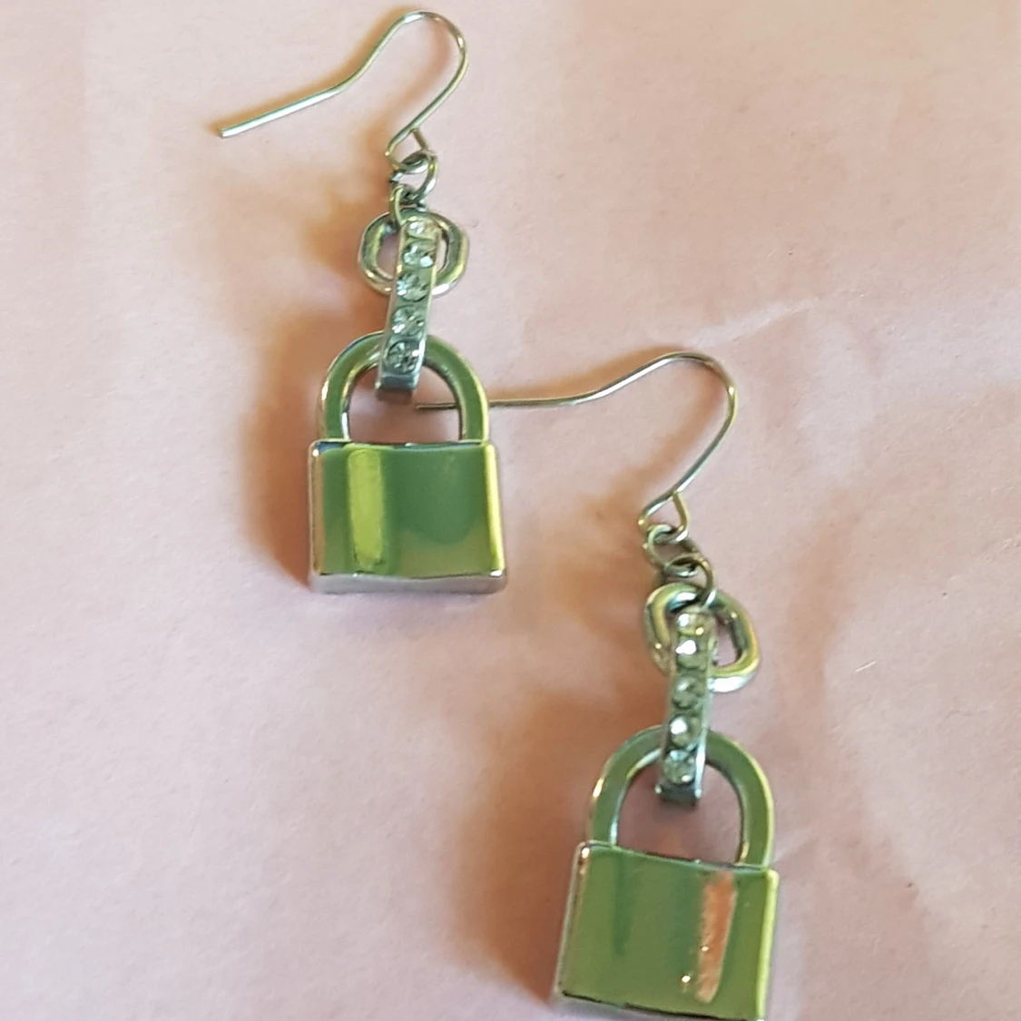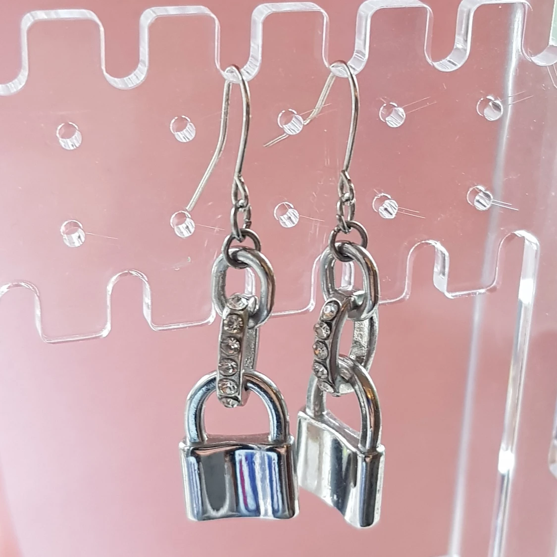 Långa silvriga örhängen. Relativt tunga. Ca 3cm i längd och 1cm i bredd. Nickelfria. (Ej äkta silver)