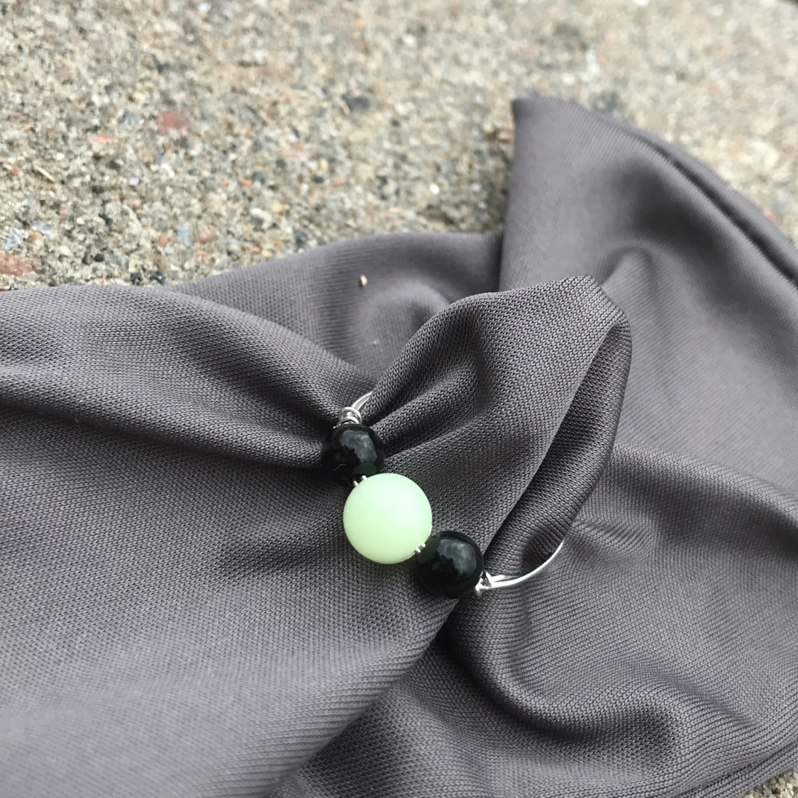 En egengjord pärlring, med två svarta pärlor och en självlysande i mitten😎. Den är Nickel fri, Bly fri och Kadium fri!!!!