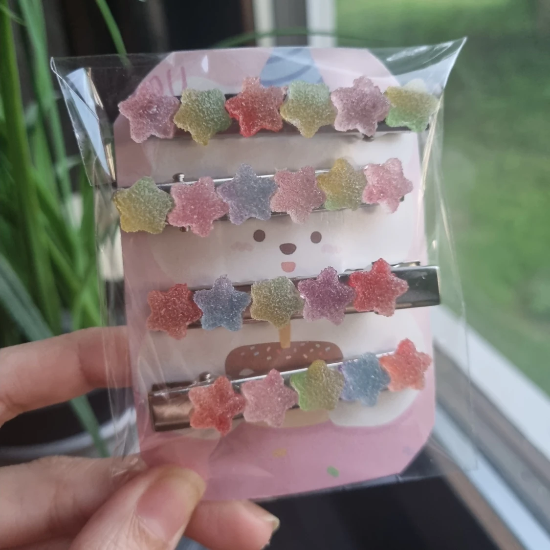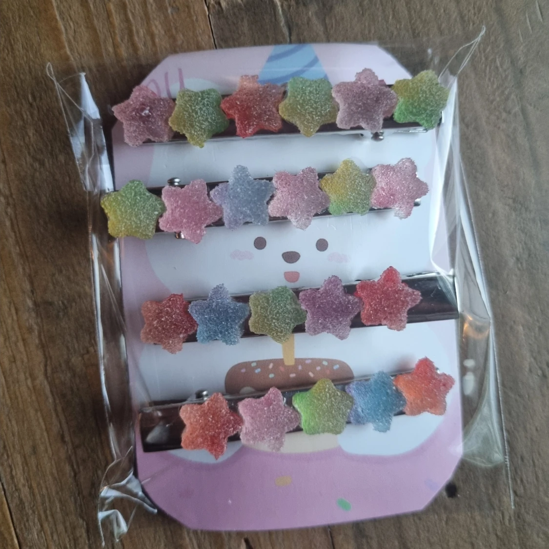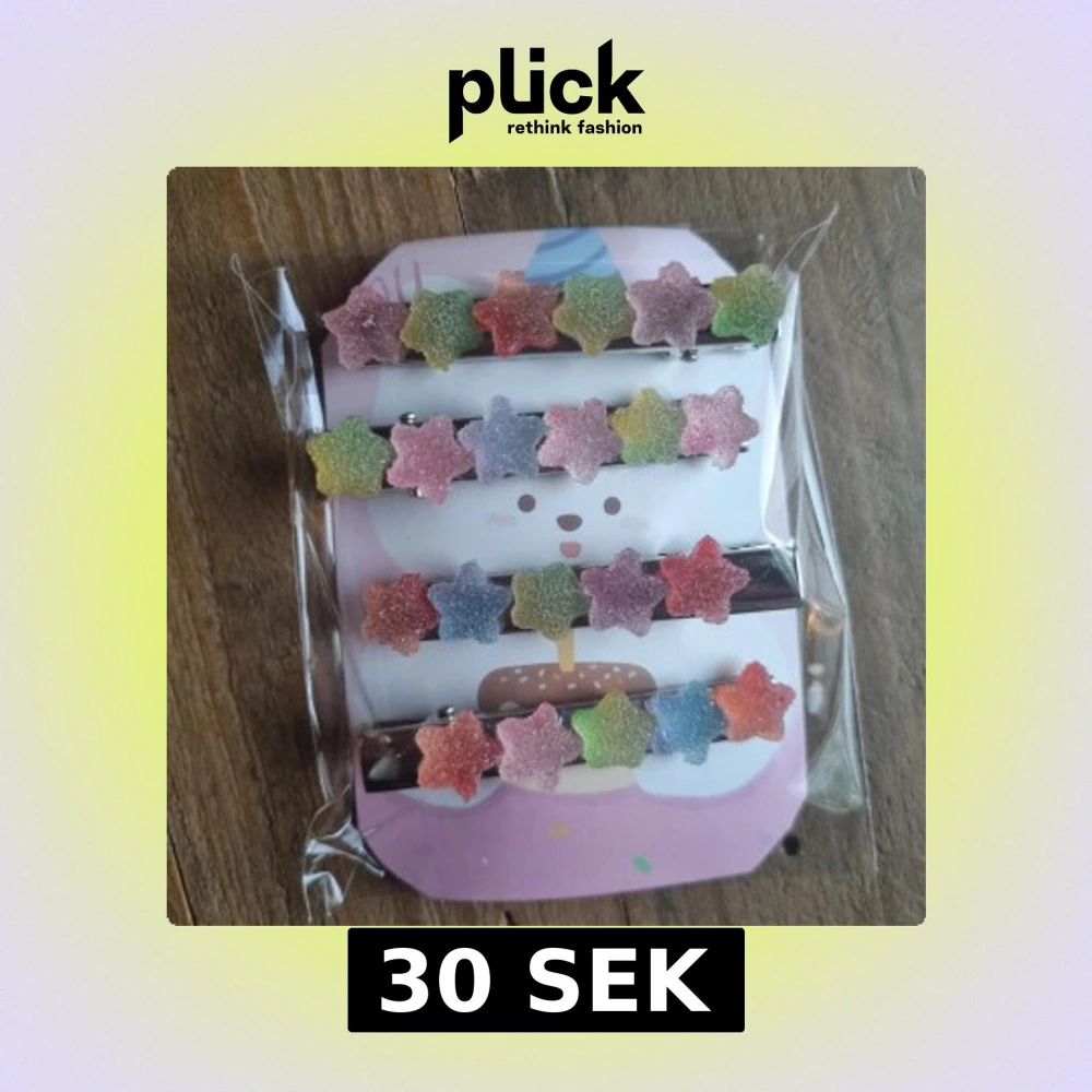 Två par söta hårspännen med stjärnor som ser ut som godisar. Storlek 5,5cm