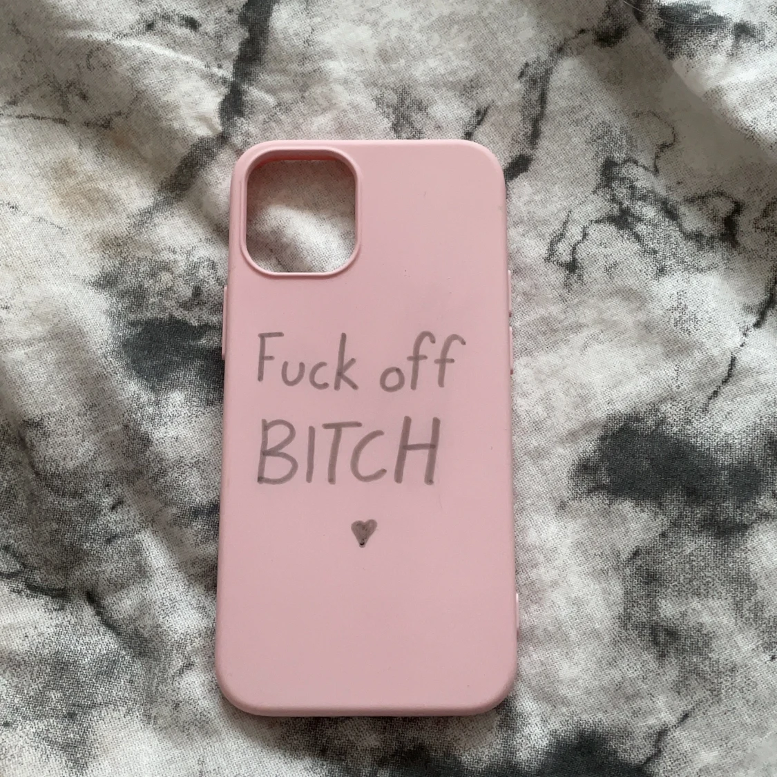 Ett rosa mobilskal med text, den har aldrig kommit till användning eftersom att jag inte gillade skalet så att jag bara skrev på det.