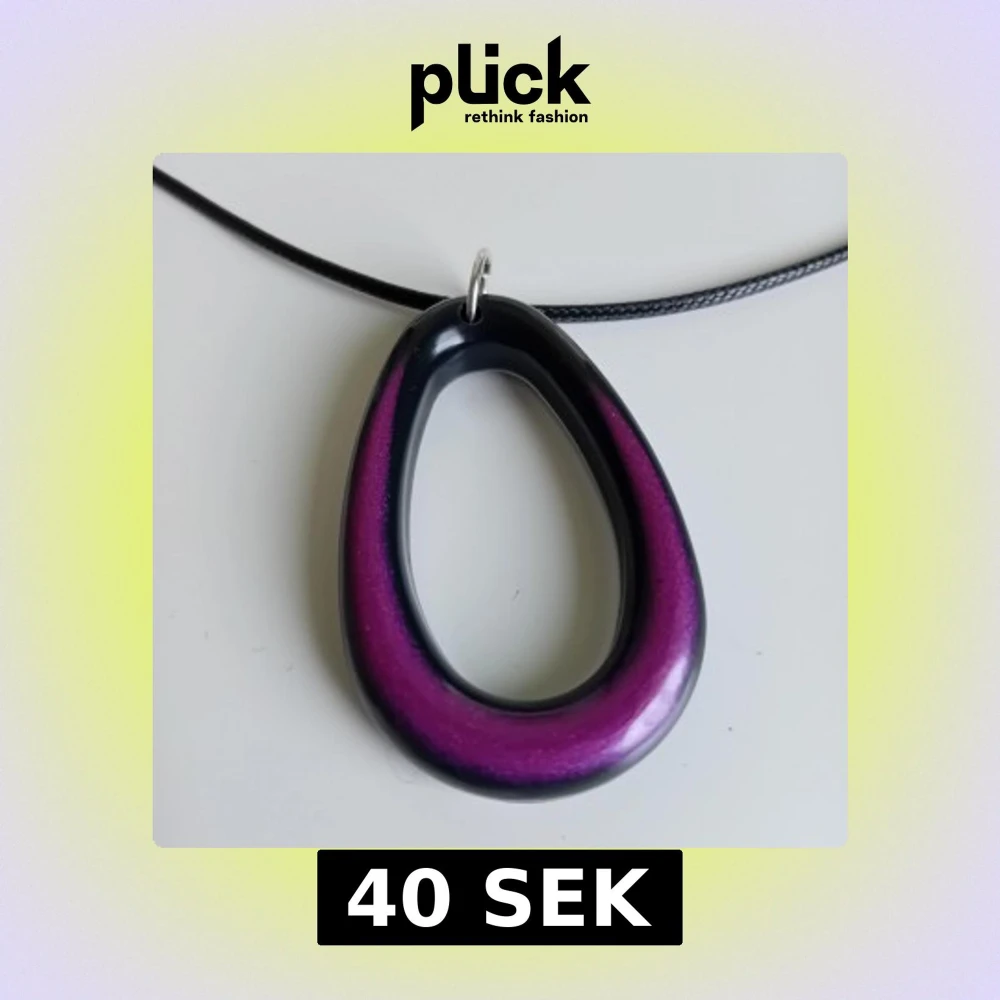 Halsband skapat i svart resin/epoxy och lila/rosa skimmer pigment. Motivet är 5cm långt, bandet kan justeras.