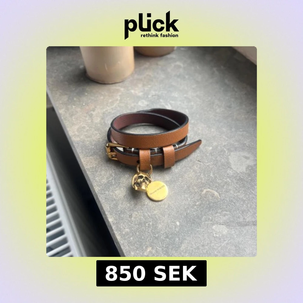 Brunt läder armband från Alexander mcqueen. Armbandet är dubbel wrapped med guld detaljer. Köpt på deras hemsida för ca 2år sedan och är i bra skick.