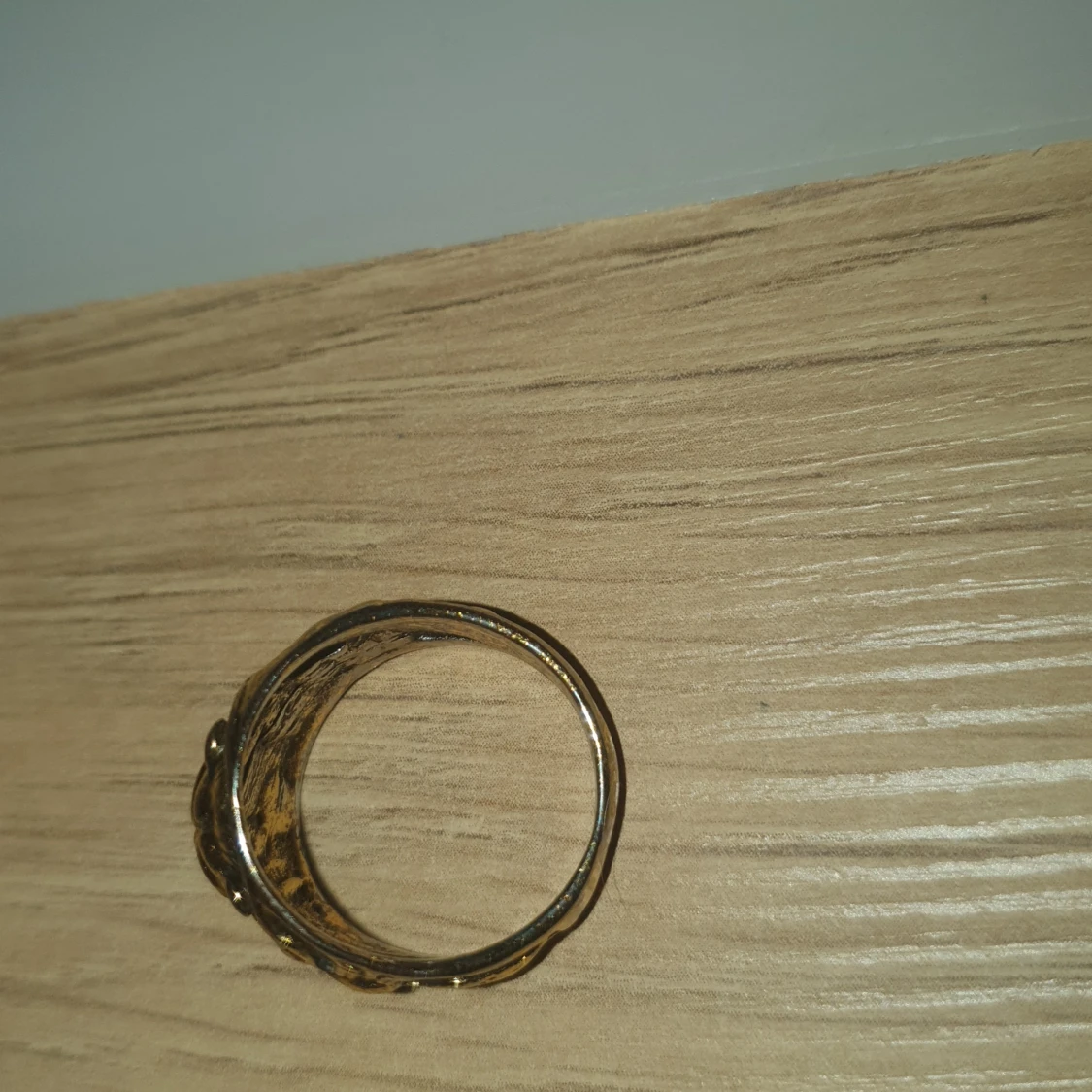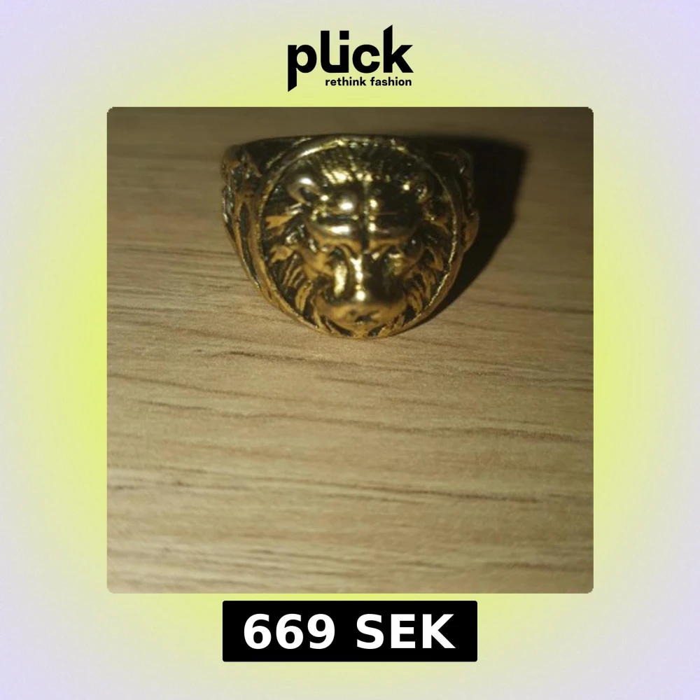 Snygg och en gammal guldfärgad ring med ett detaljerat lejonmotiv på framsidan. Perfekt för att ge en djärv och unik touch till din stil.