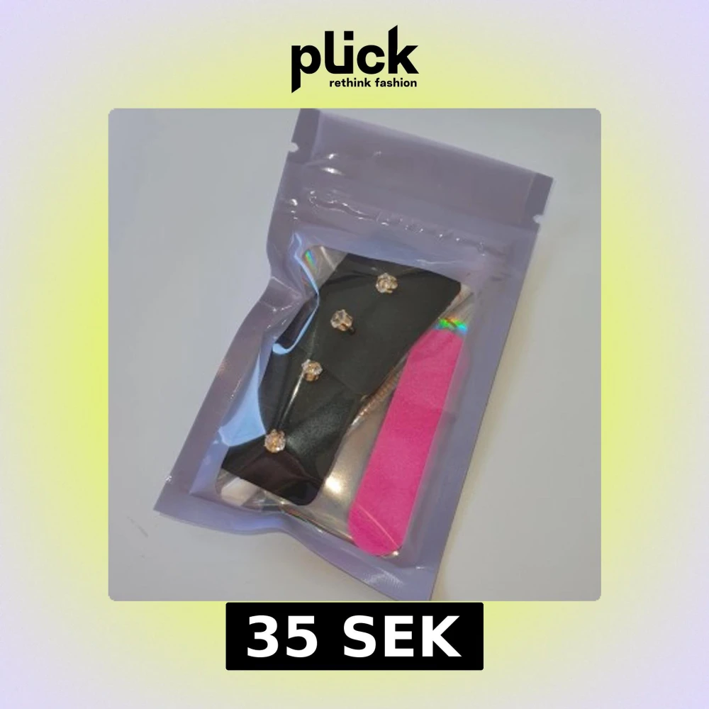 Säljer ett set. Setet innehåller tre par örhängen med gnistrande stenar. Perfekt för att lägga till lite bling till din outfit. Inkluderar även en rosa nagelfil och en rengöringspinne för sår.