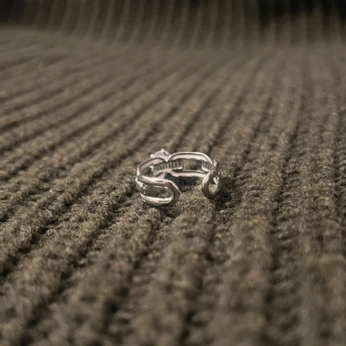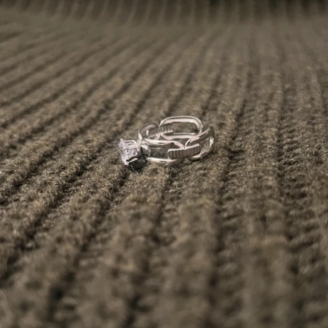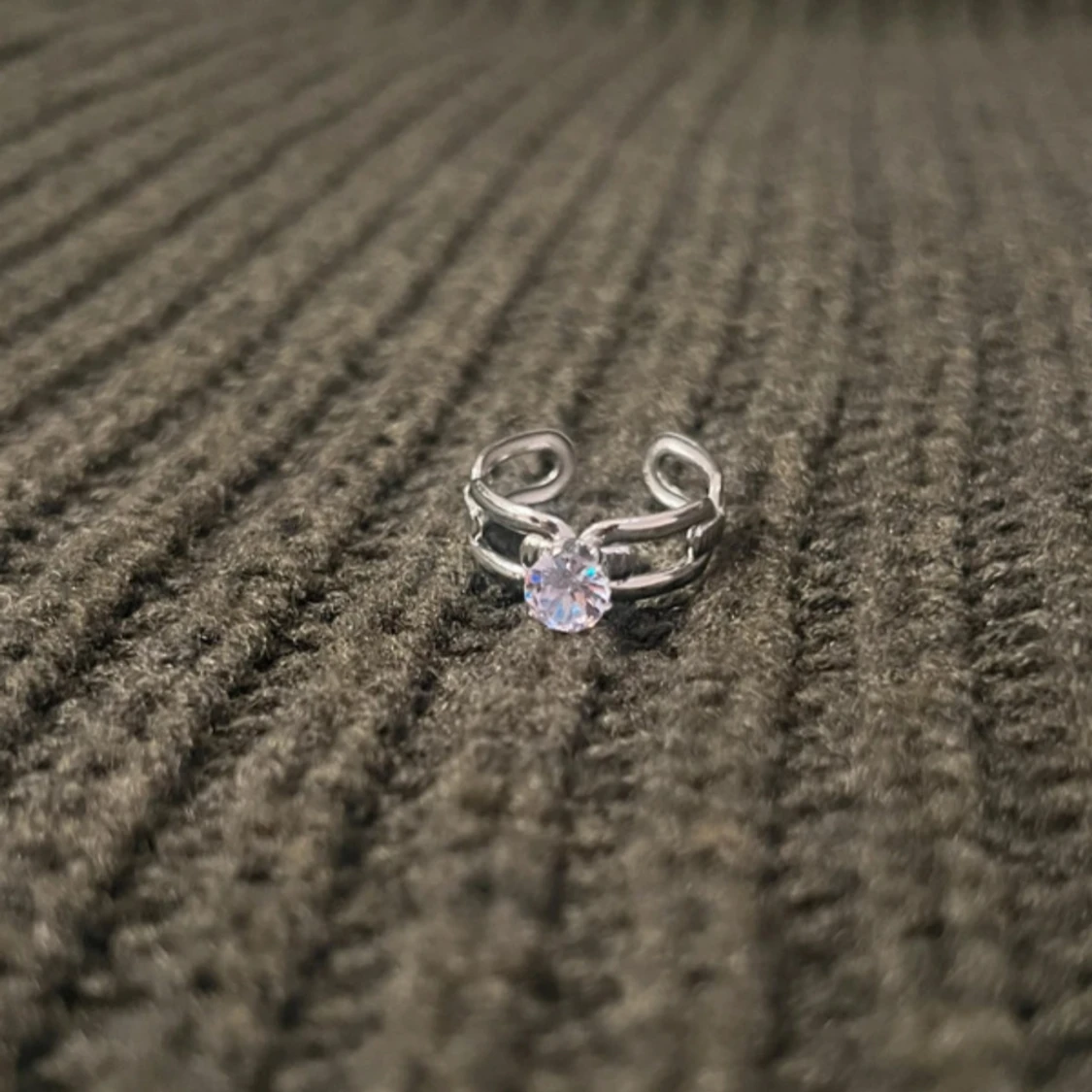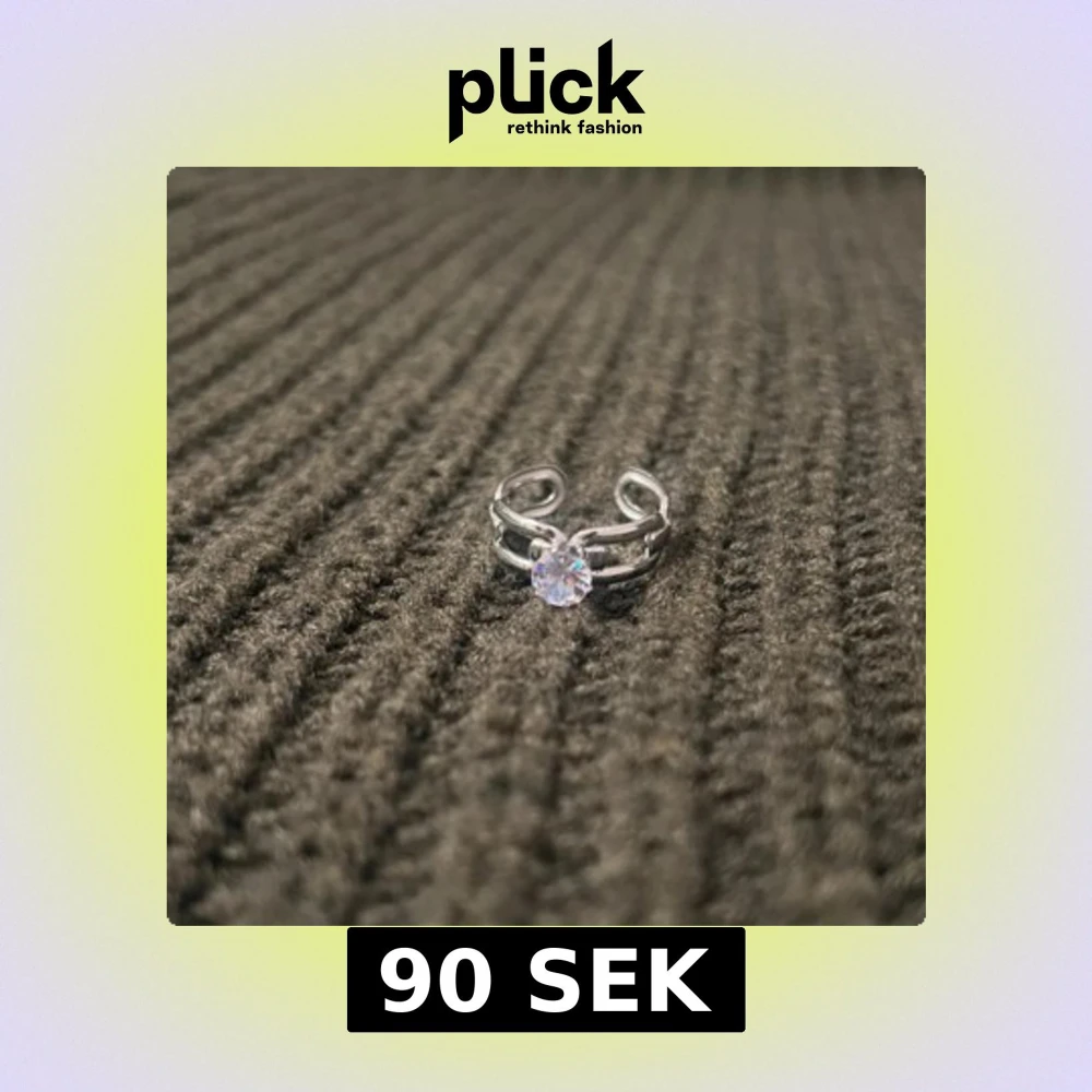 US storlek 7, diameter 17,3 mm, omkrets 54,4 mm. En stilren ring med modern minimalistisk design och en subtilt gnistrande sten. Den justerbara passformen gör den bäde elegant och bekväm för alla tillfällen.