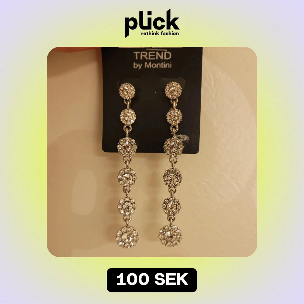 Slivriga örhängen med typ kristaller. Alla kristaller finns kvar.