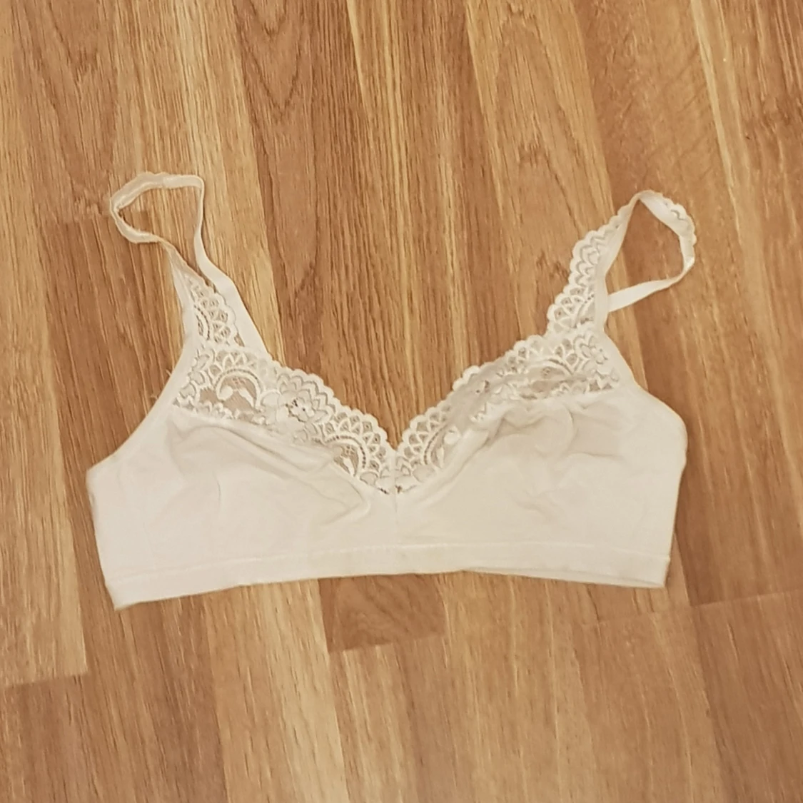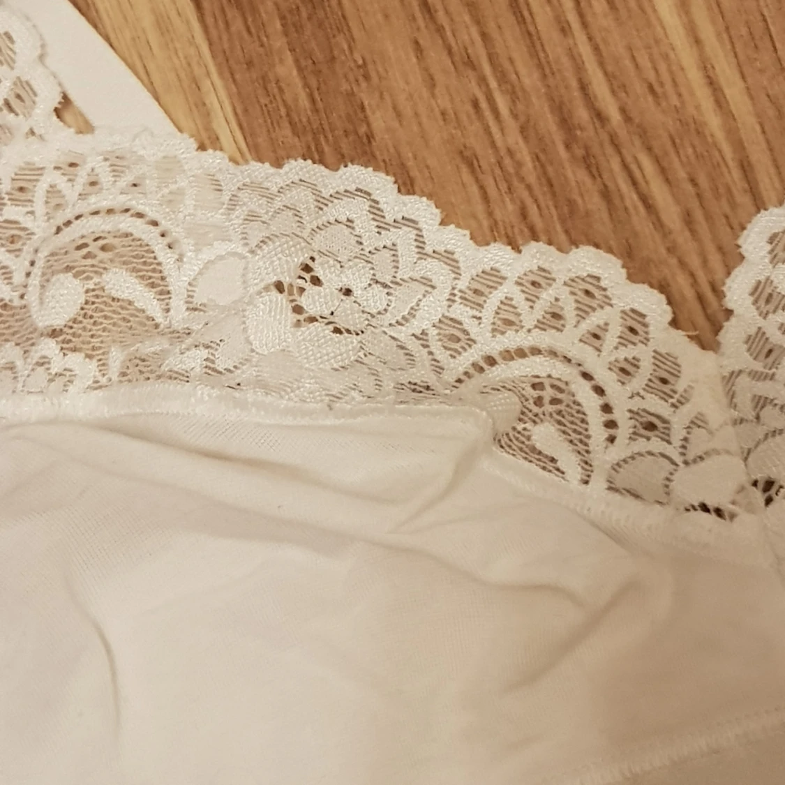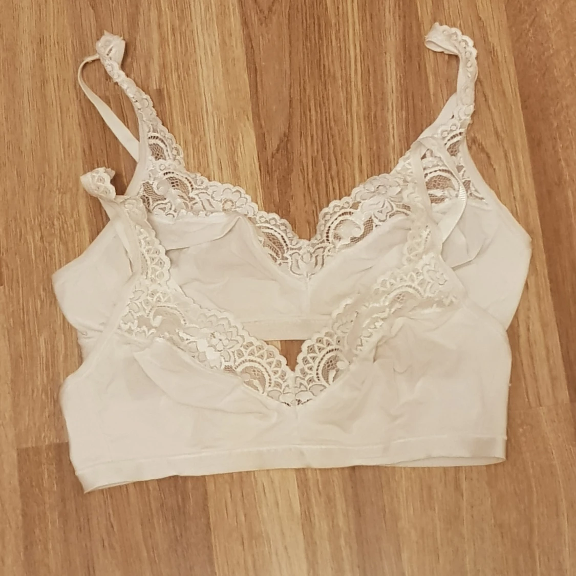 2st sloggi bhar med spets vita st s 75AB jag uppskatar strl Använda men i bra sick Ingen push up å inga kuddar dom är super tuna Priset är för båda tillsammans