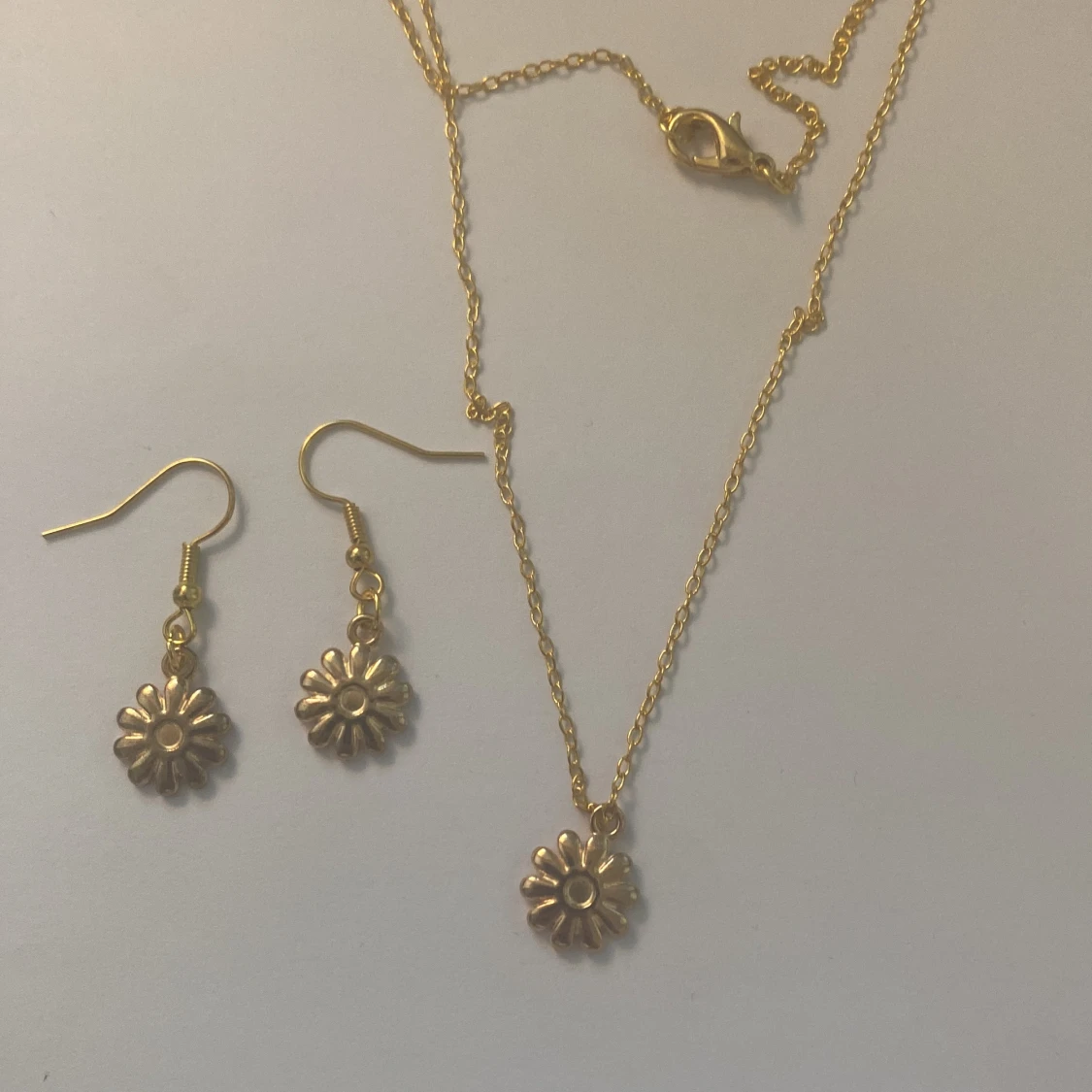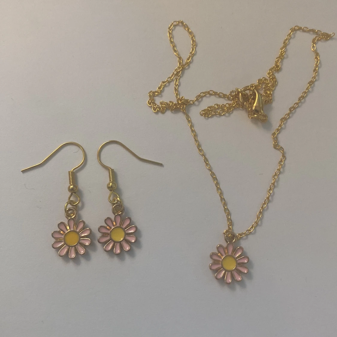 Ett halsband och ett par örhängen som är i en jätte fin rosa färg i blom färg! 45 för båda 25 för örhängen och 30 för halsbandet