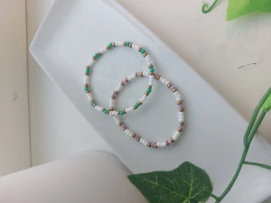 Somriga egengjorda armband med stretchig trÄd. Det gÄr att designa egna. 30/st+18 kr frakt.