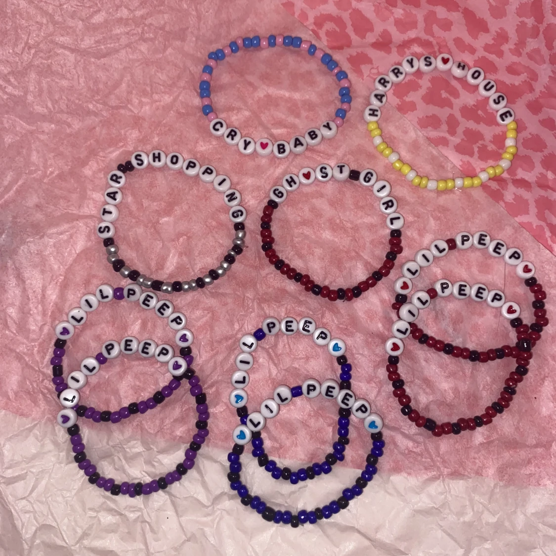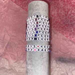 Mät din handled så gör jag ett armband som passar just för dig! Du kan välja färg och vad det ska stå om det du vill ha inte finns på bilden! 1 kostar 20kr, 3 för 50❤️