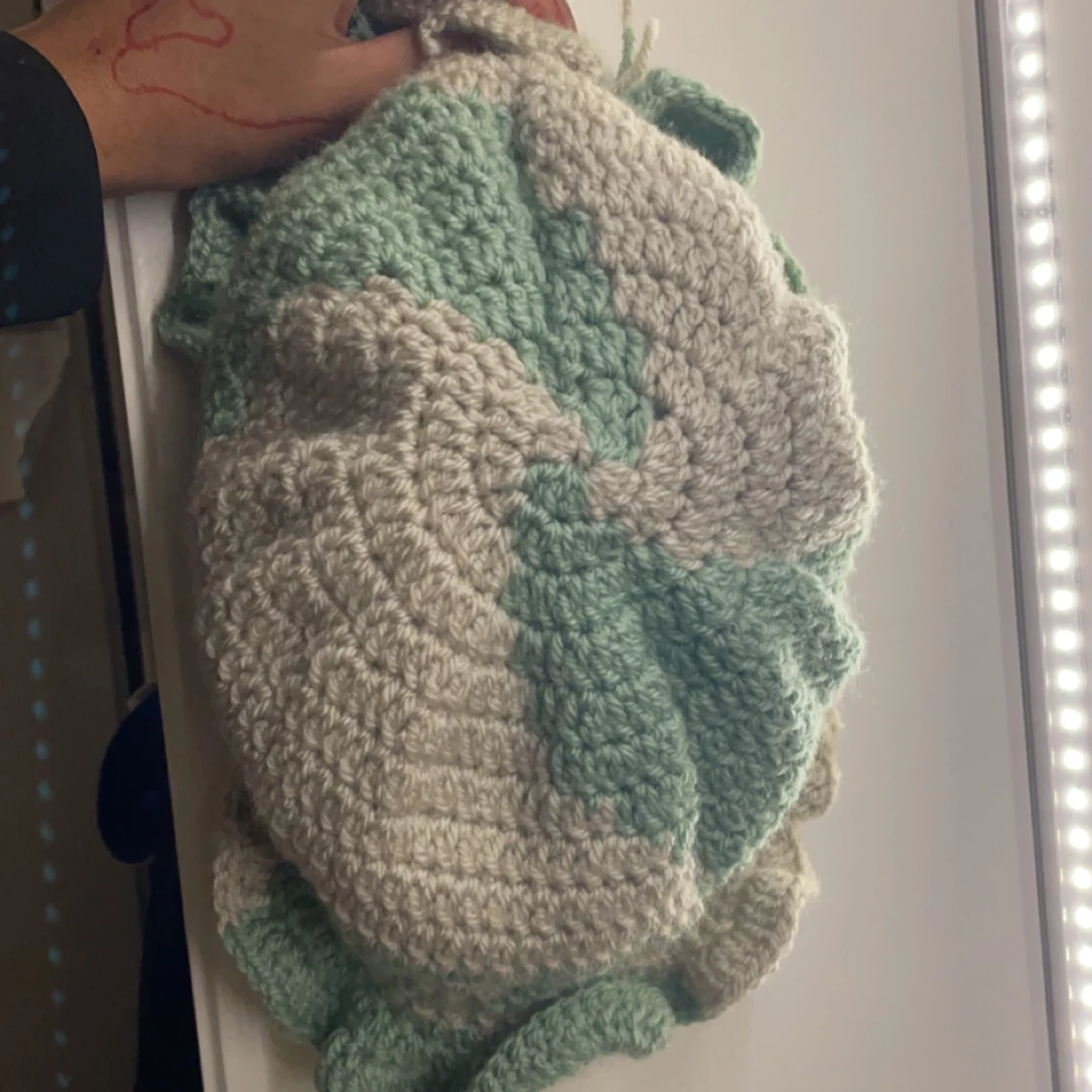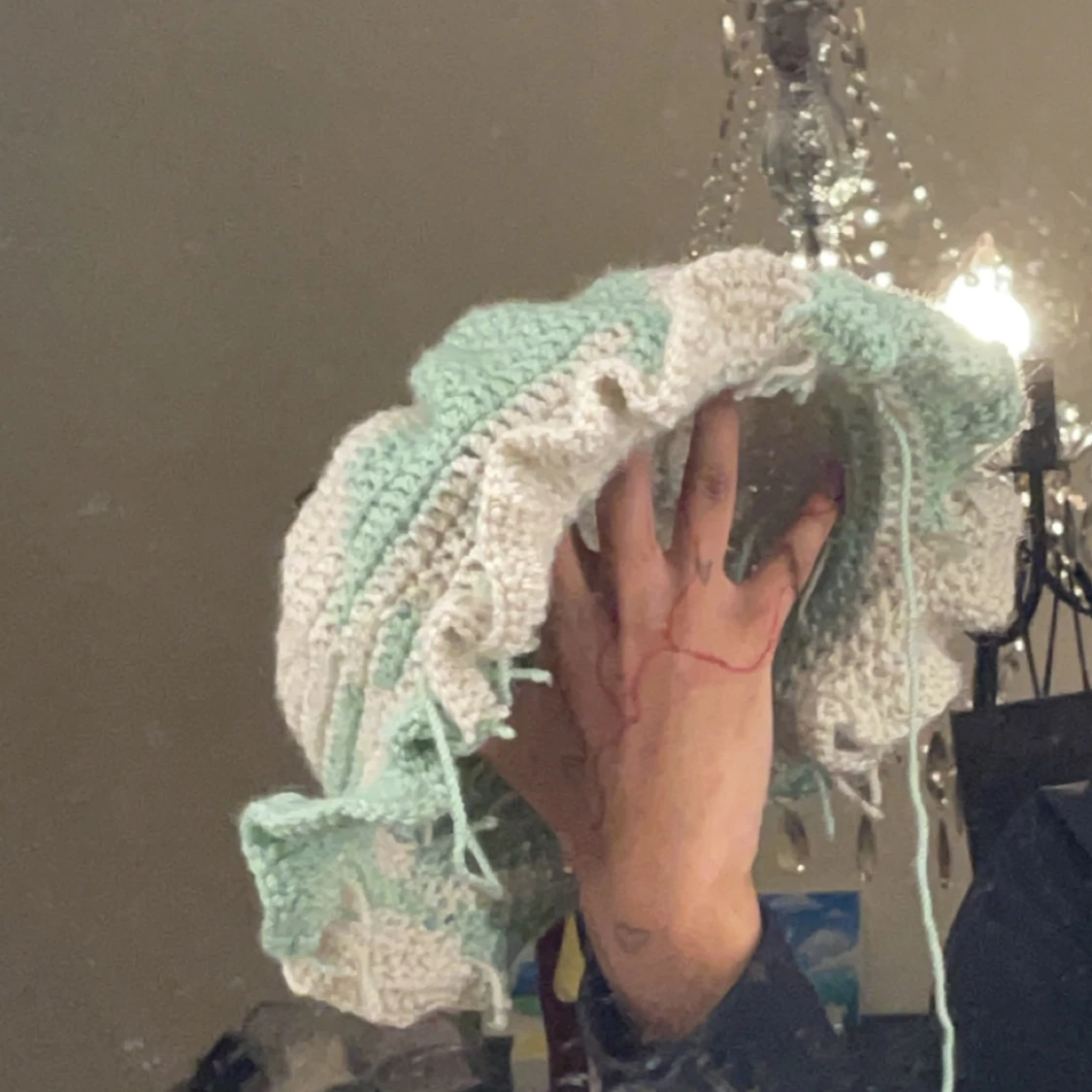 Grön och vit buckethat som jag själv har virkat. Supersöt och smidig att ha. Finns i alla olika färgkombinationer så det är bara att fråga om du vill beställa en :)