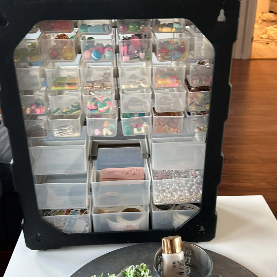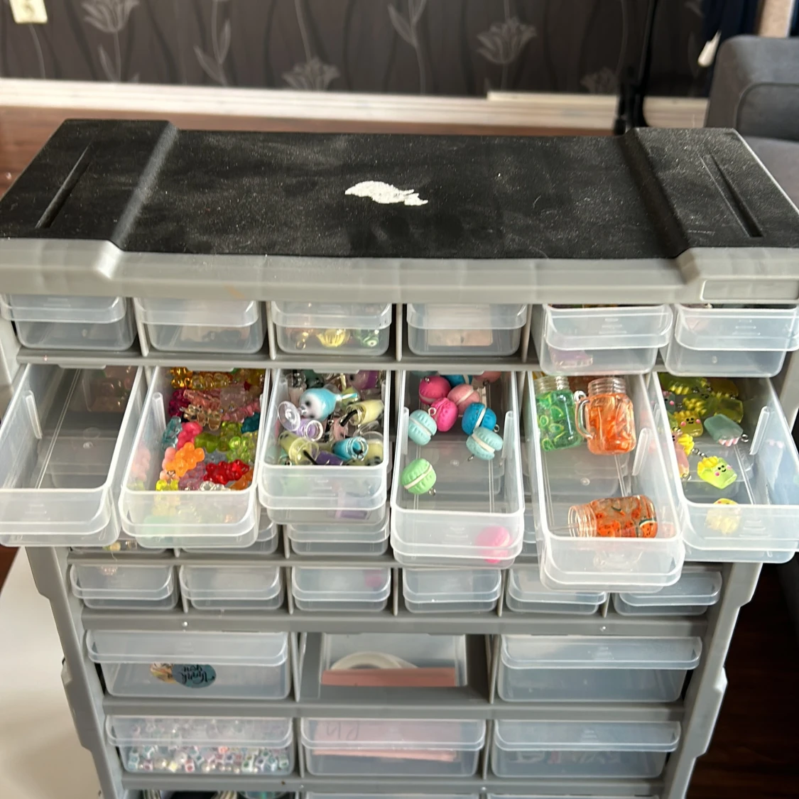 En stor förvarings låda med massa berlocker jätte mycket tillbehör och massa olika saker det är i bra skick. 650 kr eller bud