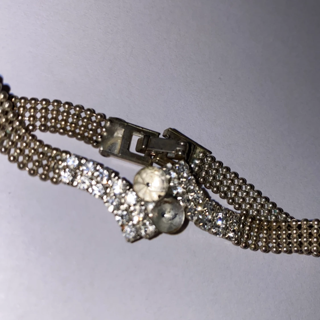Ett armband som har tappt två ”diamanter” i mitten men den ser fortfarande fin ut