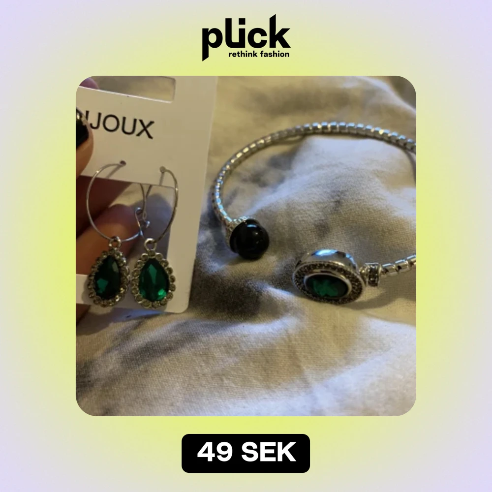 Fina örhängen som köptes från guldfynd förra veckan till bal, passar perfekt till grön eller svart balklänning/klädsel. Nypris:89 kr (armbandet finns att köpa)