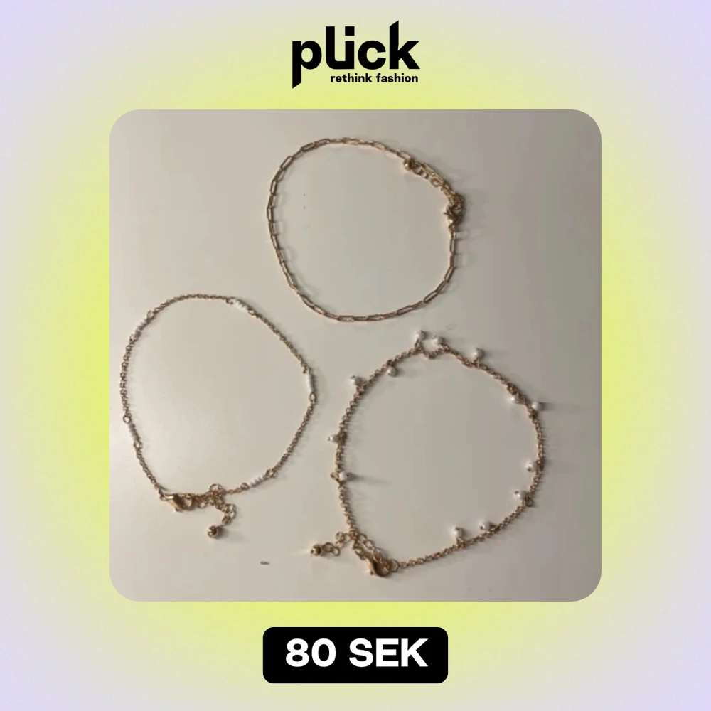Tre fotlänkar/anklets i guld färg (fejk)⭐️✨ 22,5 cm på kortaste spänningen , 26cm på längsta💋🌆