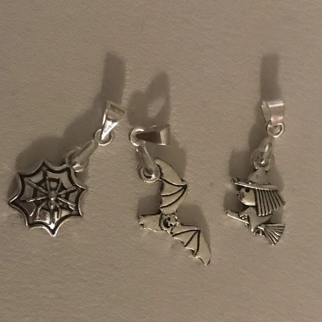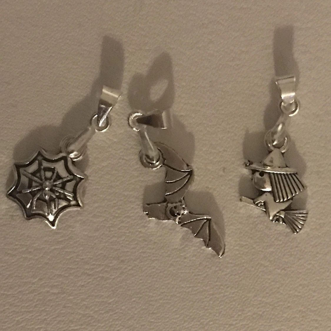 Haloween smycken , häxa, spindelväv och fladdermus. Gjort av tibetanskt silver och äkta silver hänge. Nytt oanvänt och handgjort. Kontakta gärna vid frågor🌺☺️ finns fler på min profil🌸50kr st🌸