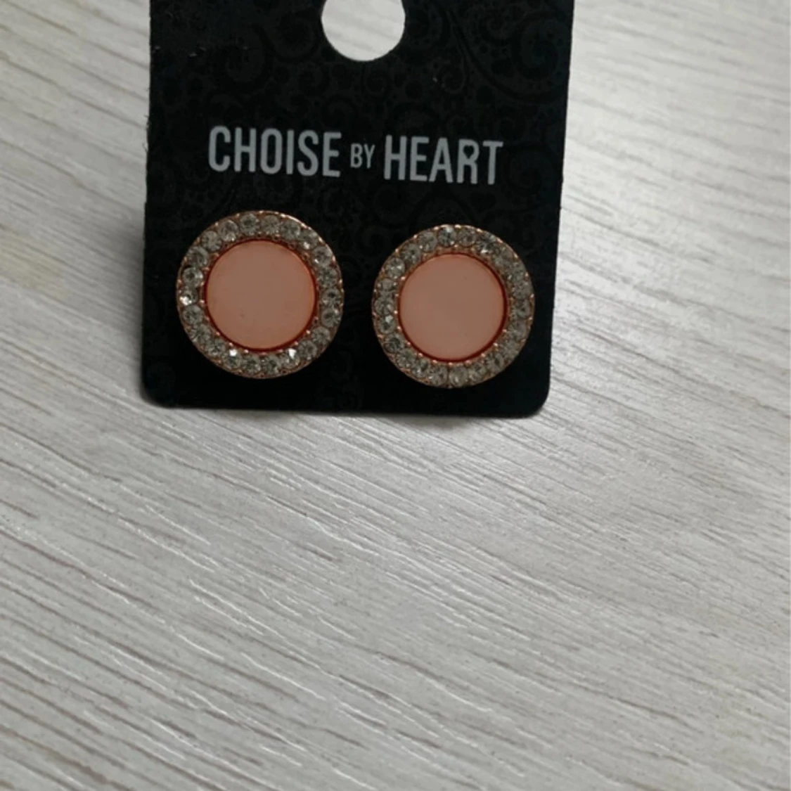 Snygga runda örhängen från Choise by Heart med en ljusrosa mitt och en glittrig kant i silver. Perfekta för att ge en touch av elegans till din outfit. 💖