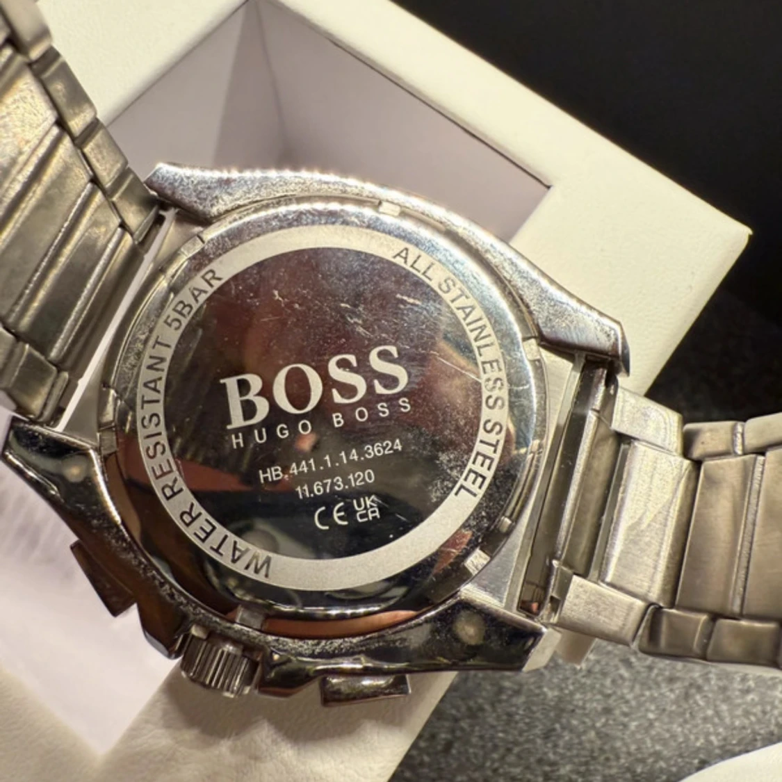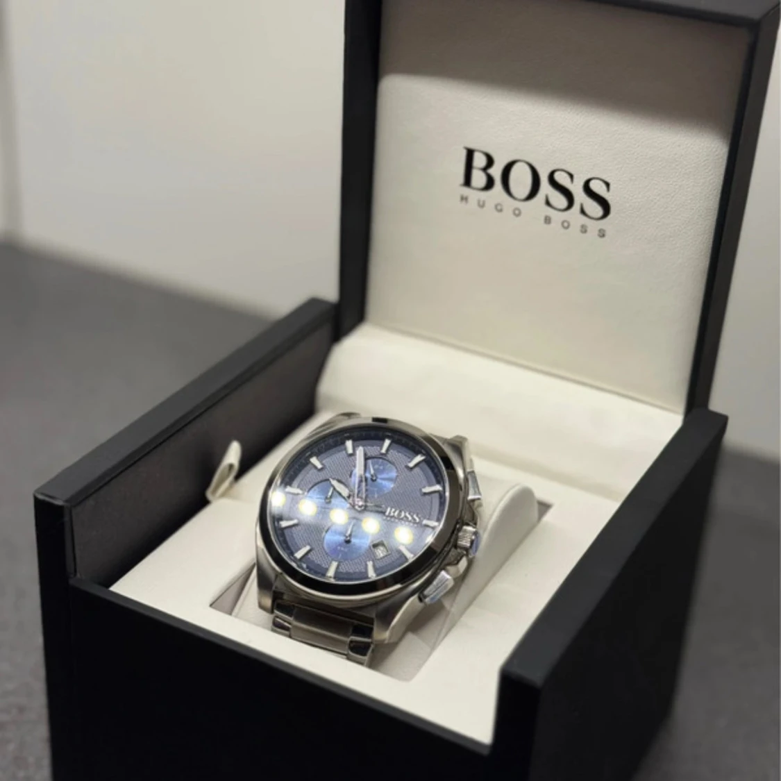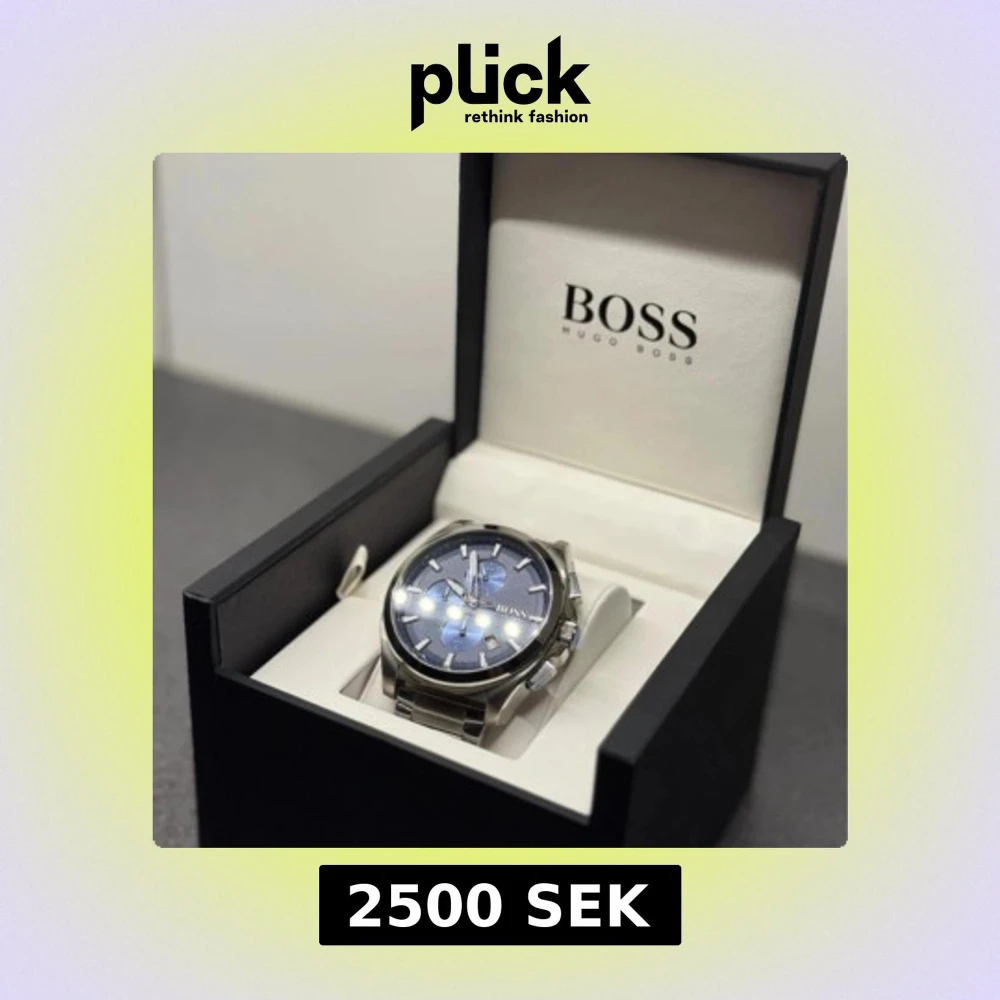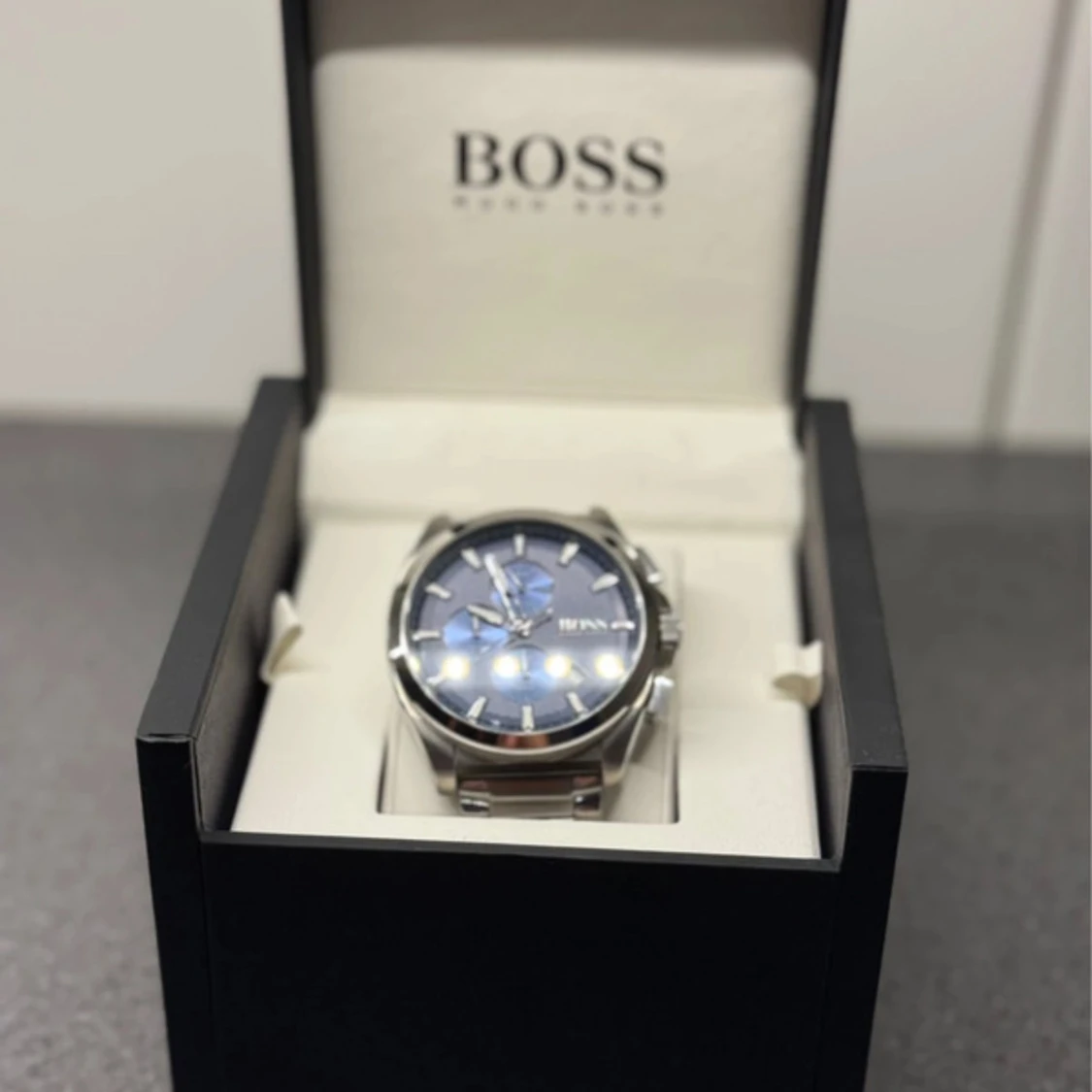 Snygg kronografklocka från Hugo Boss med blå urtavla och silvrigt armband i rostfritt stål. Klockan har tydliga index, tre subdials och robust länkarmband. Kommer i originalask med märkets logga. Perfekt accessoar för dig som gillar stilren design.