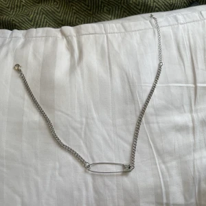 silvrigt halsband med en säkerhetsnål, nästan helt oanvänd. ungefär 48 cm