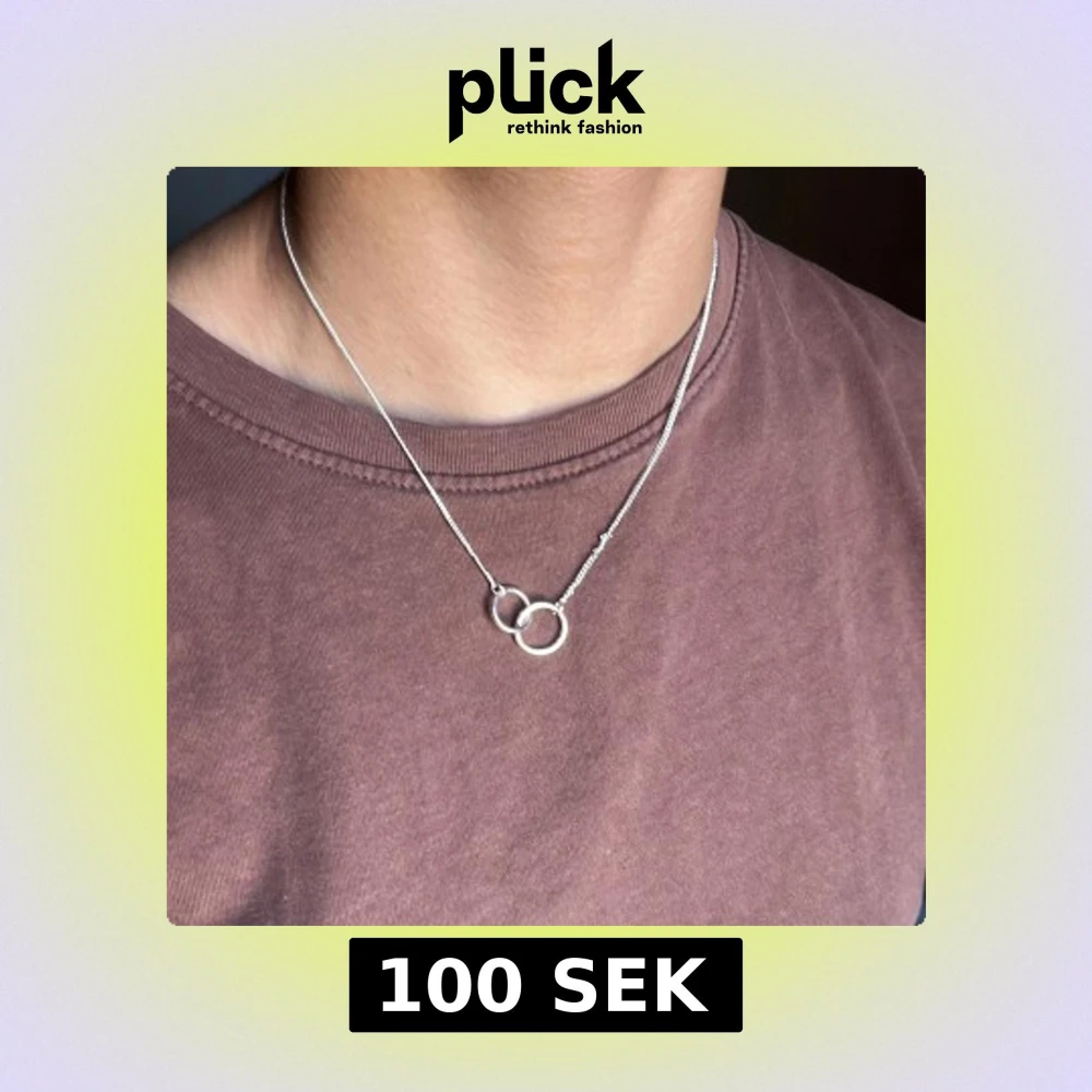 Säljer ett stilrent halsband i silverfärg med två sammanlänkade ringar. Kedjan är tunn och smidig, perfekt för dig som gillar minimalistiska smycken. Passar till alla tillfällen och är lätt att matcha med andra accessoarer. Priset kan diskuteras :)