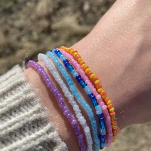 Fina armband som jag har gjort själv!🌻Passar så bra till det mesta. Tråden är elastisk och passar därför alla. Hör av dig om du har mer frågor. 1 för 10 kr, 3 för 20 kr. De skickas med brevfrakt som kostar 13 kr.
